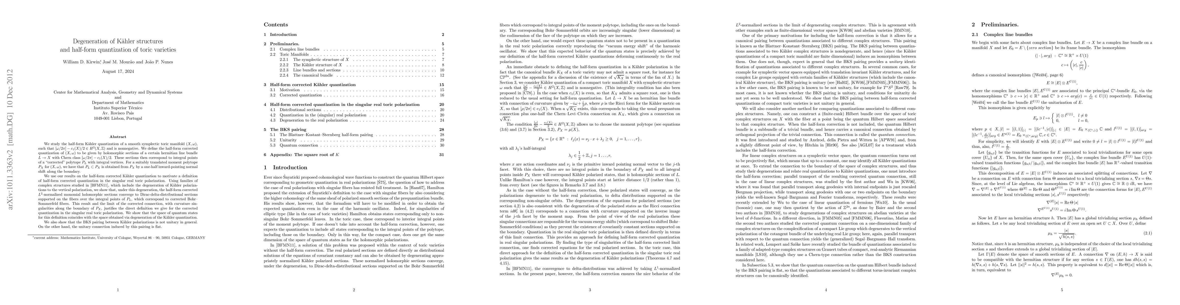 This paper explores the half-form Kähler quantization of smooth symplectic toric manifolds, defining it through holomorphic sections of a specific hermitian line bundle. It extends this concept to singular real toric polarizations, showing convergence of sections to Dirac-delta distributions, and demonstrates that the space of quantum states aligns with the Kähler quantization's degeneration.