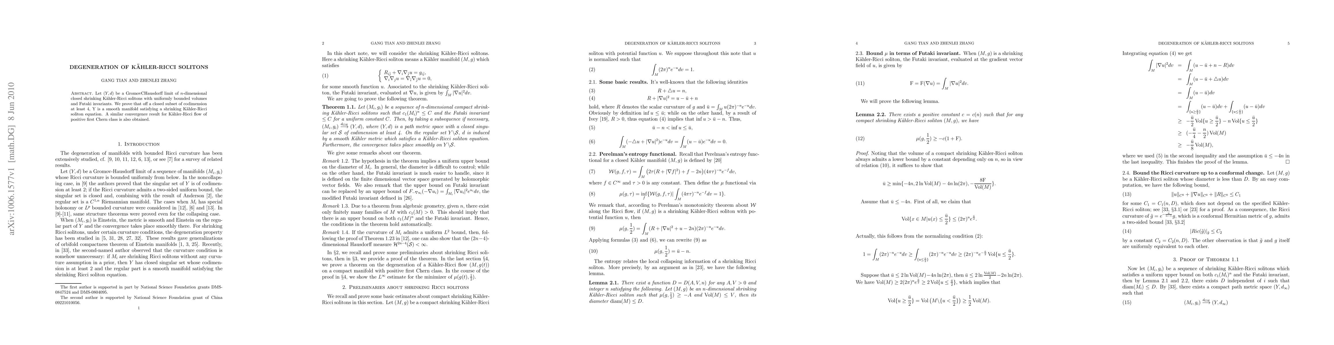 This paper proves that the Gromov-Hausdorff limit of a sequence of closed shrinking Kähler-Ricci solitons with bounded volumes and Futaki invariants is a smooth manifold satisfying a shrinking Kähler-Ricci soliton equation, except on a closed subset of codimension at least 4. A similar result is obtained for Kähler-Ricci flow with positive first Chern class.