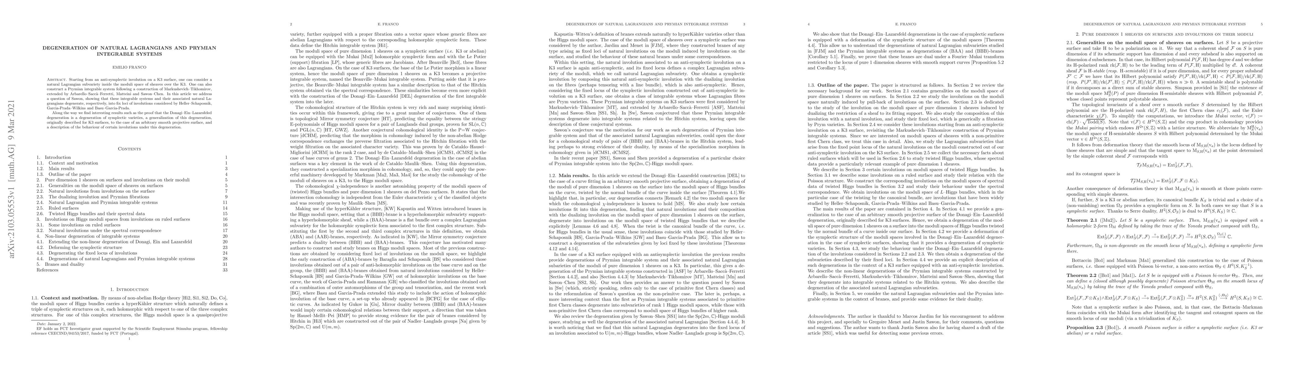 This research paper explores the degeneration of natural Lagrangians and Prymian integrable systems on a K3 surface, showing they collapse to fix loci of involutions, with implications for symplectic varieties and smooth projective surfaces.