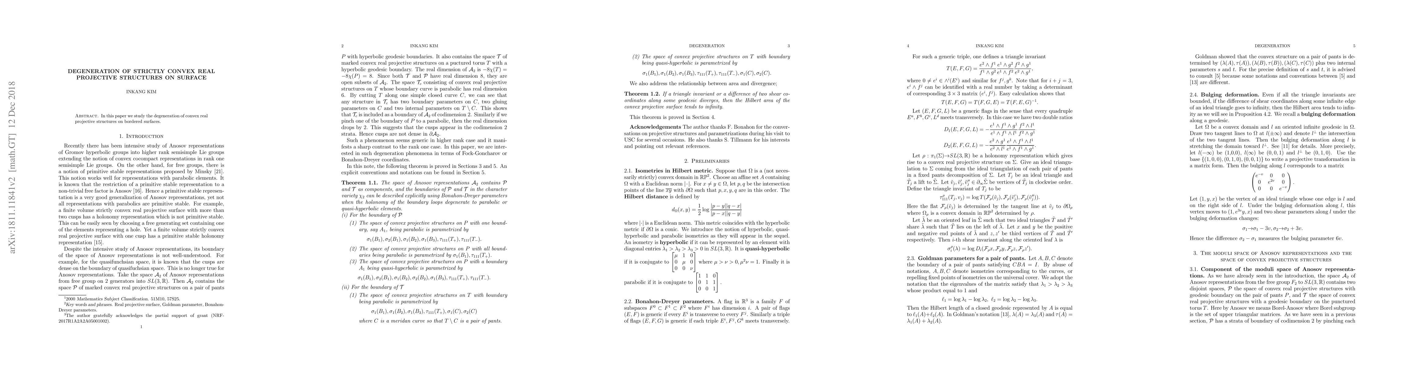 Summary: This paper investigates how strictly convex real projective structures on bordered surfaces can degenerate, focusing on the underlying mechanisms and transformations involved in this process.