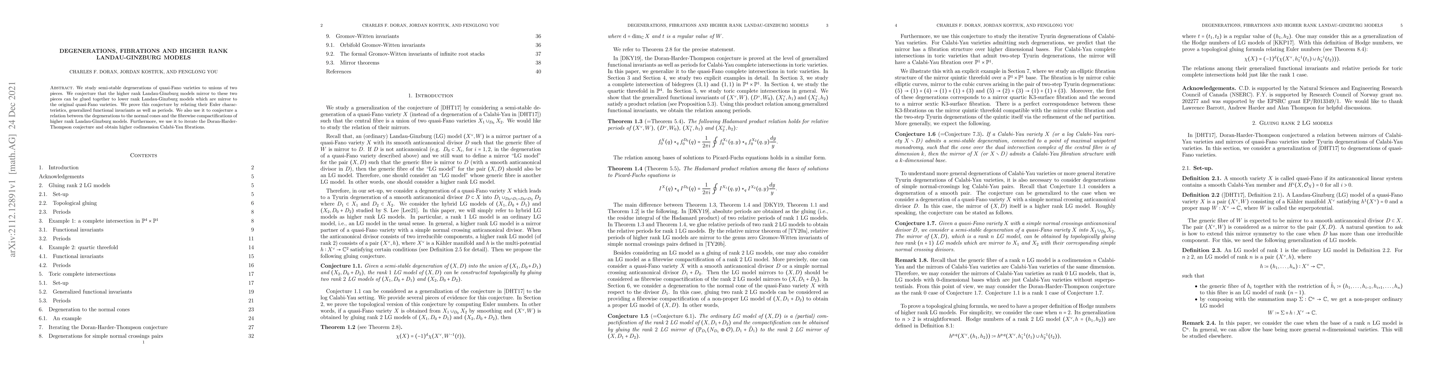 This paper investigates semi-stable degenerations of quasi-Fano varieties into unions of two pieces, proposing a conjecture that higher rank Landau-Ginzburg models mirror these degenerations and can be glued to form lower rank models mirroring the original varieties. The conjecture is supported by evidence from Euler characteristics and periods.