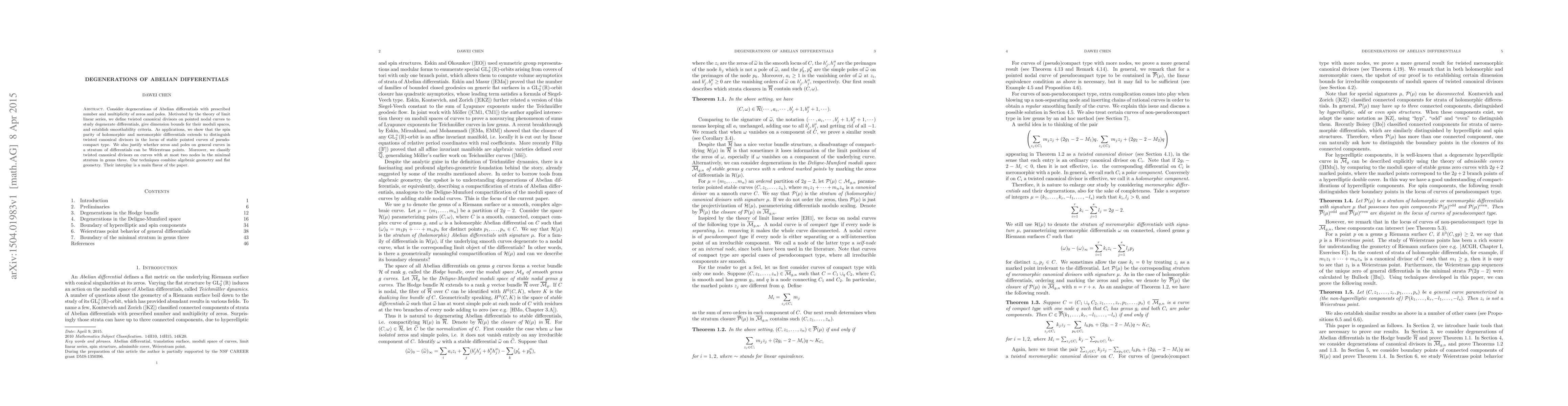 This paper studies degenerations of Abelian differentials on pointed nodal curves, defining twisted canonical divisors to analyze degenerate differentials and establishing dimension bounds and smoothability criteria. The work classifies such divisors on curves with up to two nodes in genus three, combining algebraic geometry and flat geometry techniques.