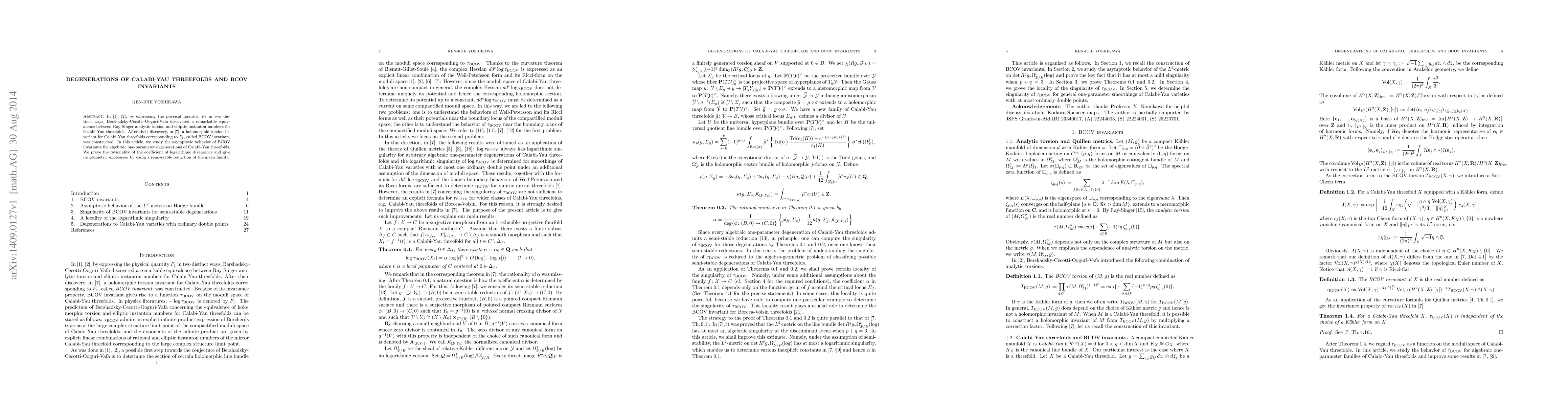 This paper investigates the asymptotic behavior of BCOV invariants in algebraic one-parameter degenerations of Calabi-Yau threefolds, proving the rationality of the coefficient of logarithmic divergence and providing a geometric expression via semi-stable reduction.