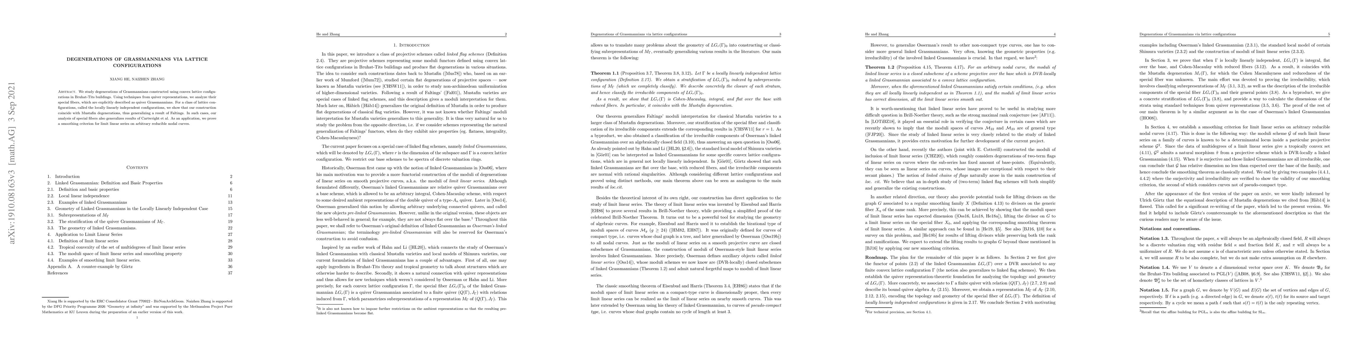 This paper investigates Grassmannians formed through convex lattice configurations in Bruhat-Tits buildings, showing they coincide with Mustafin degenerations for locally linearly independent configurations. It also provides a smoothing criterion for limit linear series on reducible nodal curves.