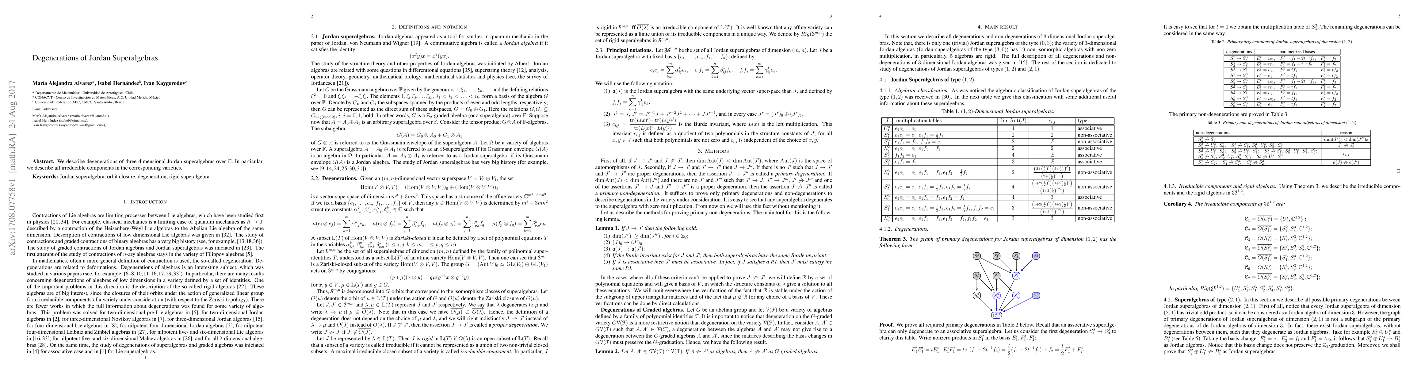 Research describes degenerations of 3D Jordan superalgebras over C, focusing on irreducible components in corresponding varieties.