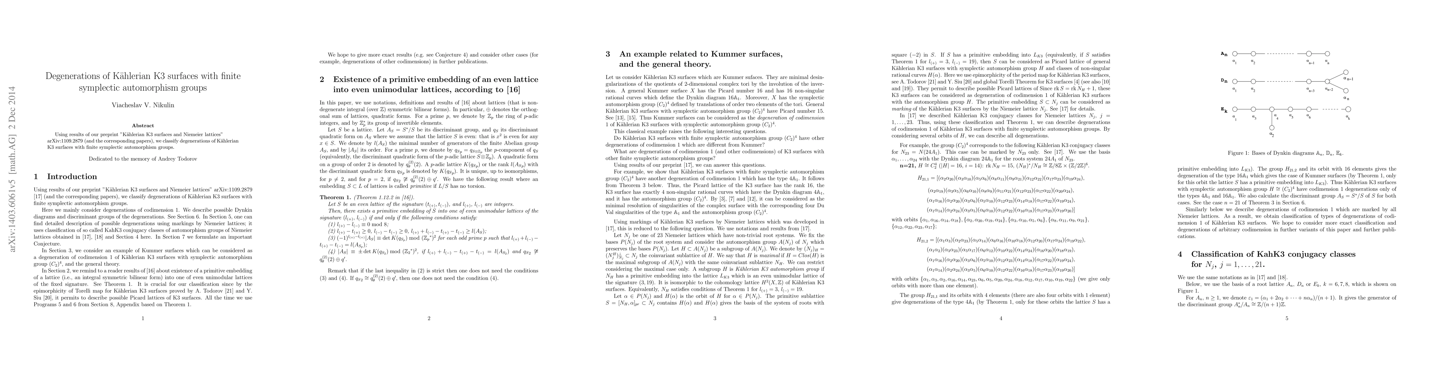 Summary: The paper classifies the degenerations of Kahlerian K3 surfaces that possess finite symplectic automorphism groups, building on prior work on Niemeier lattices and related preprints. This classification provides insight into the structure and properties of these special surfaces.