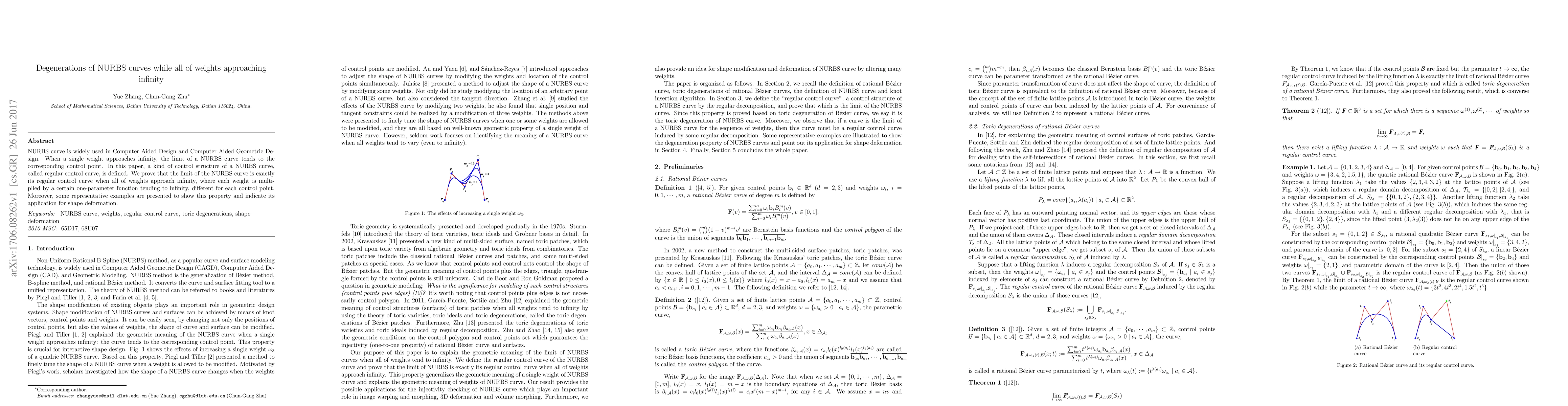 NURBS curve is widely used in Computer Aided Design and Computer Aided Geometric Design. When a single weight approaches infinity, the limit of a NURBS curve tends to the corresponding control point. In this paper, a kind of control structure of a NURBS curve, called regular control curve, is defined. We prove that the limit of the NURBS curve is exactly its regular control curve when all of weights approach infinity, where each weight is multiplied by a certain one-parameter function tending to infinity, different for each control point. Moreover, some representative examples are presented to show this property and indicate its application for shape deformation.