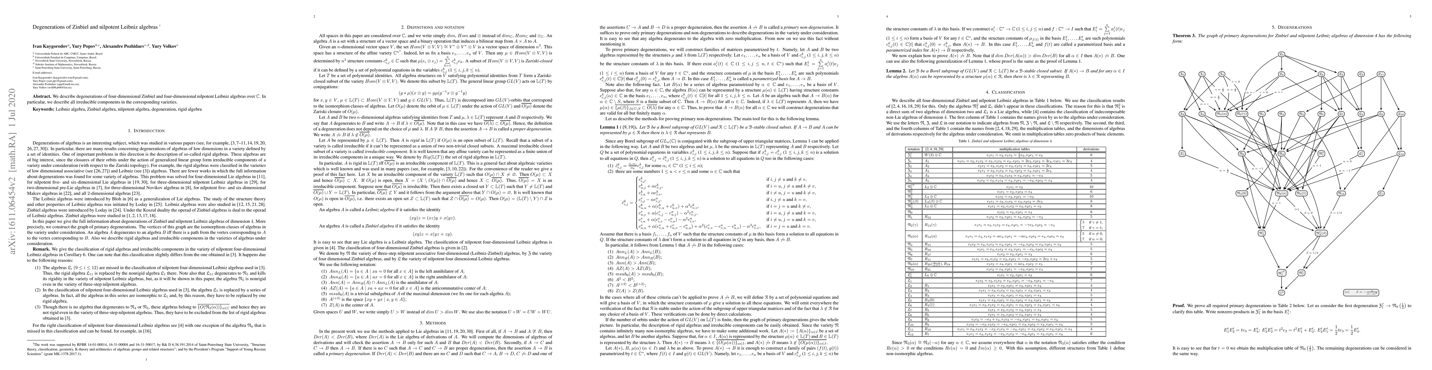 Summary: The paper investigates four-dimensional Zinbiel and nilpotent Leibniz algebras over the complex numbers, focusing on their degenerations and identifying all irreducible components in the associated varieties.