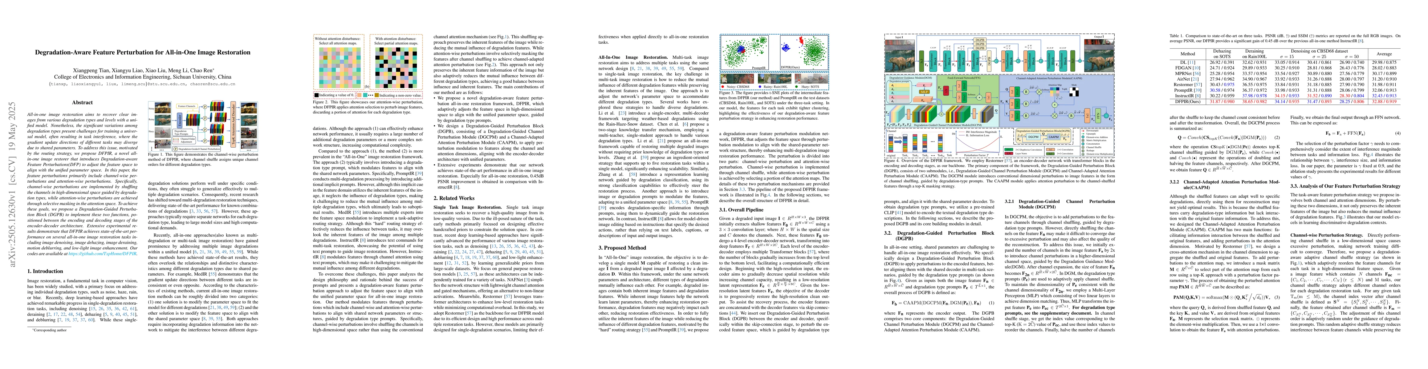 A new image restoration method, DFPIR, uses degradation-aware feature perturbations to improve performance on various degradations types, achieving state-of-the-art results in multiple tasks.