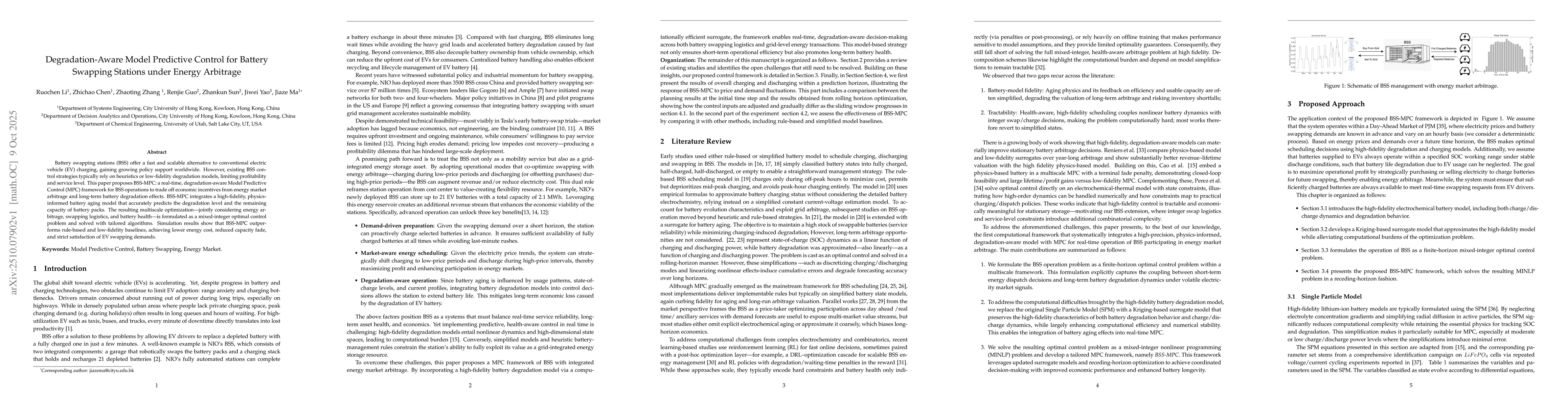 The research introduces BSS-MPC, a real-time model predictive control framework for battery swapping stations (BSS) that integrates a physics-informed capacity fade model. It uses a combination of differential equations and optimization techniques to balance short-term energy arbitrage with long-term battery degradation.