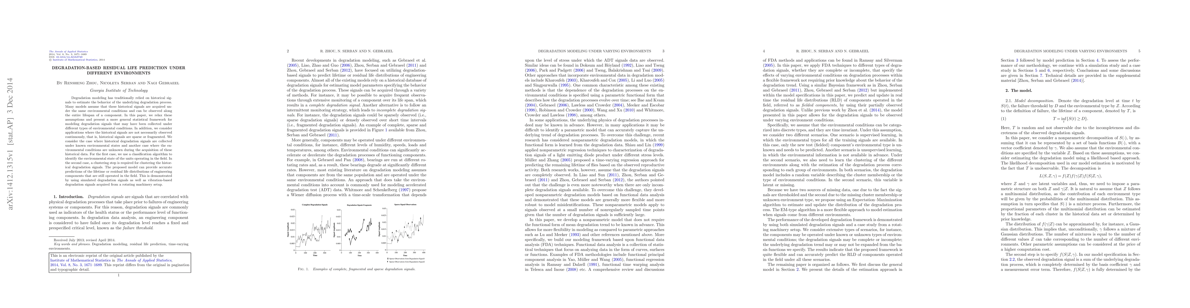 This paper proposes a statistical framework for predicting the residual life of components based on degradation signals collected under varying environmental conditions, addressing scenarios with sparse or fragmented data. The model employs classification and clustering techniques to handle known and unknown environmental states, respectively, and demonstrates its effectiveness through simulations and real-world machinery data.