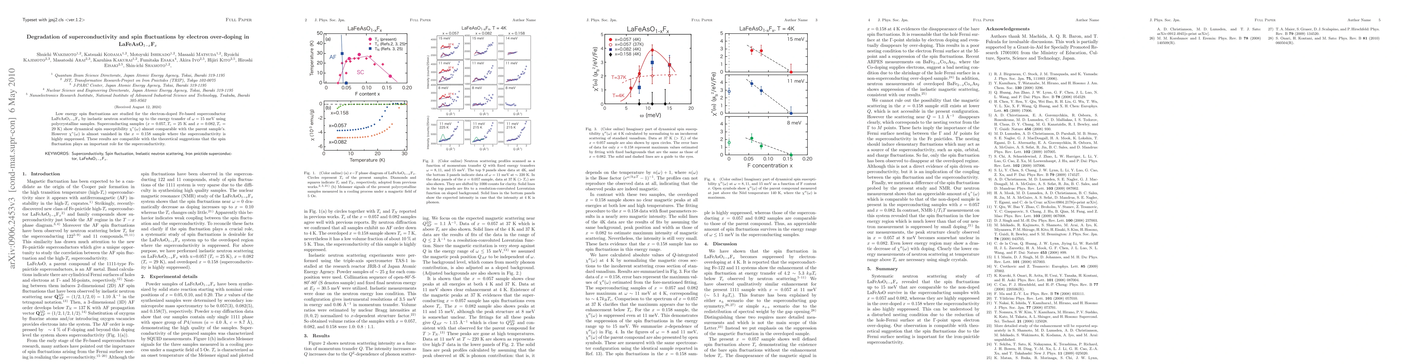 This study investigates the impact of electron over-doping on spin fluctuations in LaFeAsO$_{1-x}$F$_{x}$ superconductors using inelastic neutron scattering. While moderate doping maintains spin fluctuations and superconductivity, high doping suppresses superconductivity and diminishes spin fluctuations, supporting the theory that spin fluctuations are crucial for superconductivity.