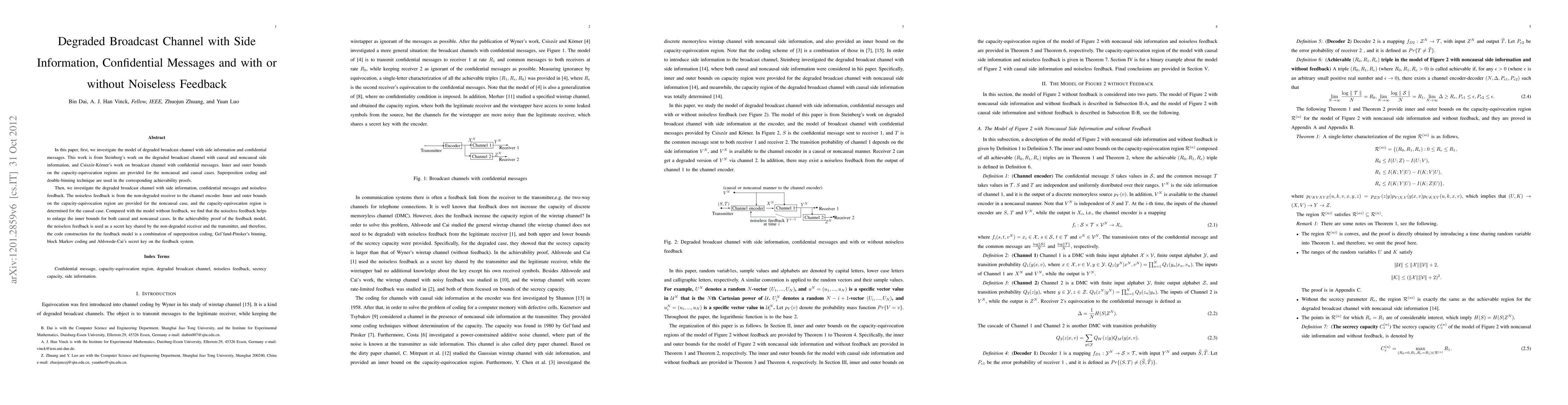 This paper explores the capacity-equivocation regions for degraded broadcast channels with side information, confidential messages, and noiseless feedback. It provides inner and outer bounds for both causal and noncausal scenarios, showing that noiseless feedback enhances capacity bounds. The study combines superposition coding and advanced techniques like double-binning and secret key sharing for code construction.