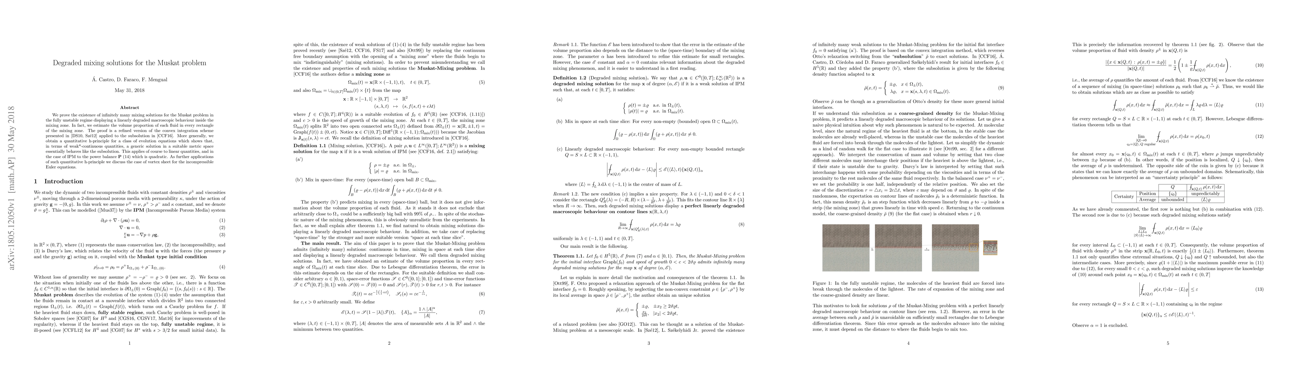 We prove the existence of infinitely many mixing solutions for the Muskat problem in the fully unstable regime displaying a linearly degraded macroscopic behaviour inside the mixing zone. In fact, we estimate the volume proportion of each fluid in every rectangle of the mixing zone. The proof is a refined version of the convex integration scheme presented in [DS10, Sze12] applied to the subsolution in [CCF16]. More generally, we obtain a quantitative h-principle for a class of evolution equations which shows that, in terms of weak*-continuous quantities, a generic solution in a suitable metric space essentially behaves like the subsolution. This applies of course to linear quantities, and in the case of IPM to the power balance $\mathbf{P}$ (14) which is quadratic. As further applications of such quantitative h-principle we discuss the case of vortex sheet for the incompressible Euler equations.