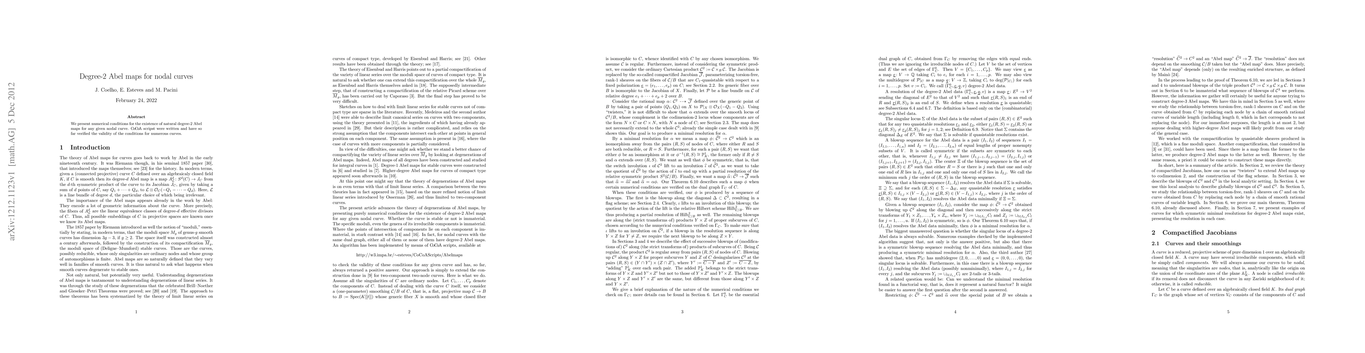 Summary: This paper provides numerical criteria for the existence of degree-2 Abel maps for nodal curves, validated through cocoa scripts for various curves, demonstrating the practical applicability of the proposed conditions.