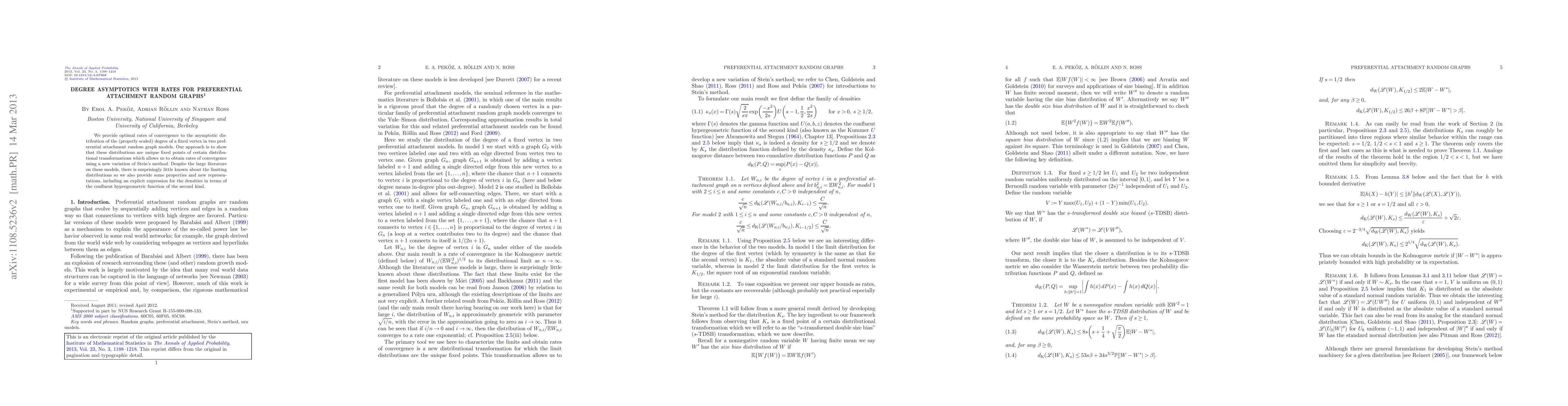 We provide optimal rates of convergence to the asymptotic distribution of the (properly scaled) degree of a fixed vertex in two preferential attachment random graph models. Our approach is to show that these distributions are unique fixed points of certain distributional transformations which allows us to obtain rates of convergence using a new variation of Stein's method. Despite the large literature on these models, there is surprisingly little known about the limiting distributions so we also provide some properties and new representations, including an explicit expression for the densities in terms of the confluent hypergeometric function of the second kind.