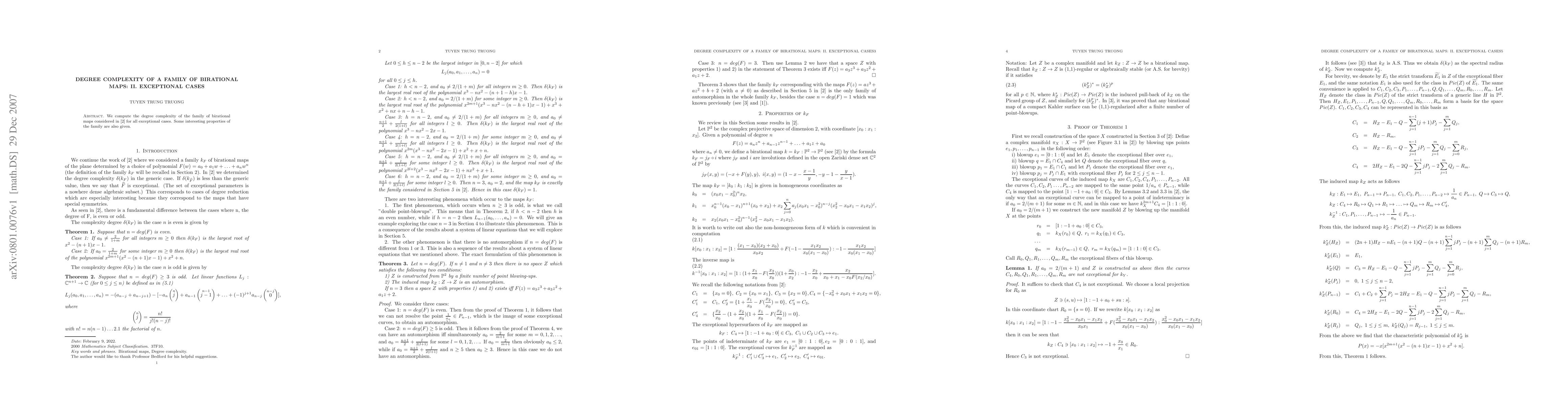 This paper computes the degree complexity for exceptional cases of a family of birational maps previously studied, revealing interesting properties of the family. The findings contribute to a deeper understanding of the behavior of these maps.