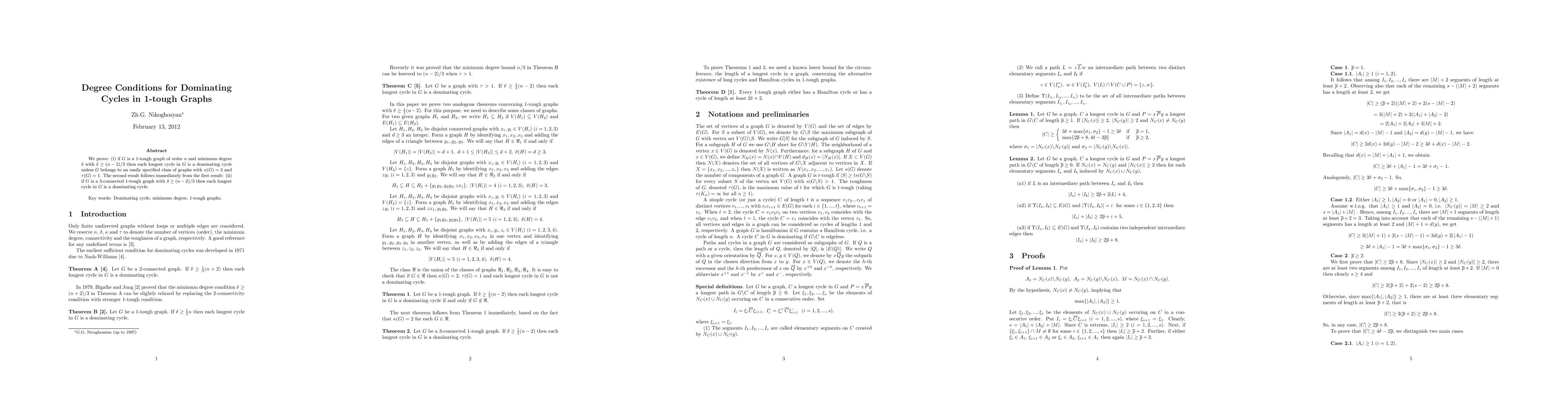We prove: (i) if $G$ is a 1-tough graph of order $n$ and minimum degree $\delta$ with $\delta\ge(n-2)/3$ then each longest cycle in $G$ is a dominating cycle unless $G$ belongs to an easily specified class of graphs with $\kappa(G)=2$ and $\tau(G)=1$. The second result follows immediately from the first result: (ii) if $G$ is a 3-connected 1-tough graph with $\delta\ge(n-2)/3$ then each longest cycle in $G$ is a dominating cycle.