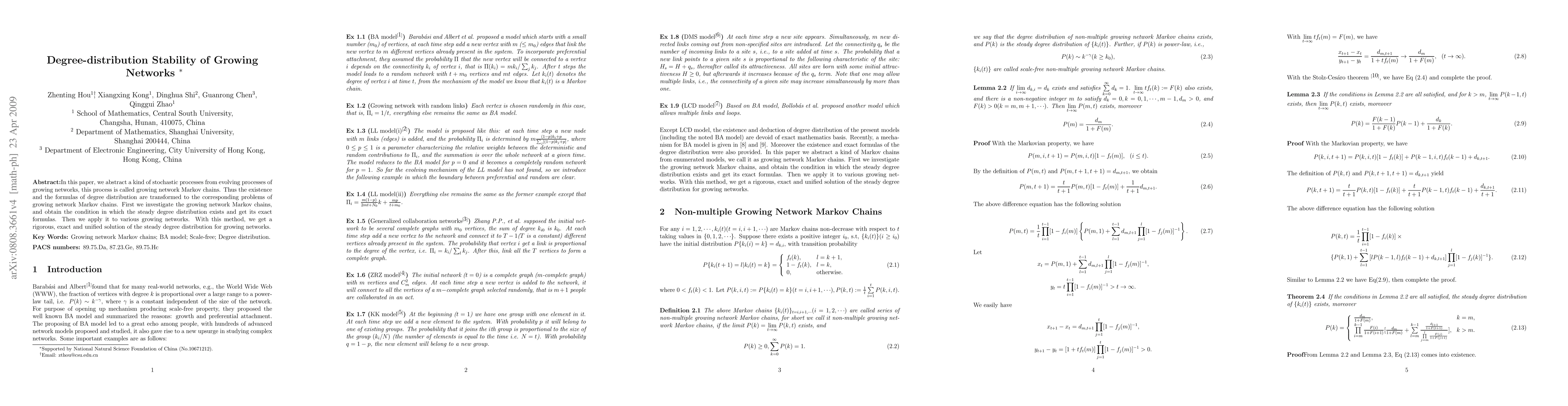 This paper investigates the steady degree distribution in growing networks through a stochastic process called growing network Markov chains, deriving exact formulas for the distribution under specific conditions and applying these findings to various network models.