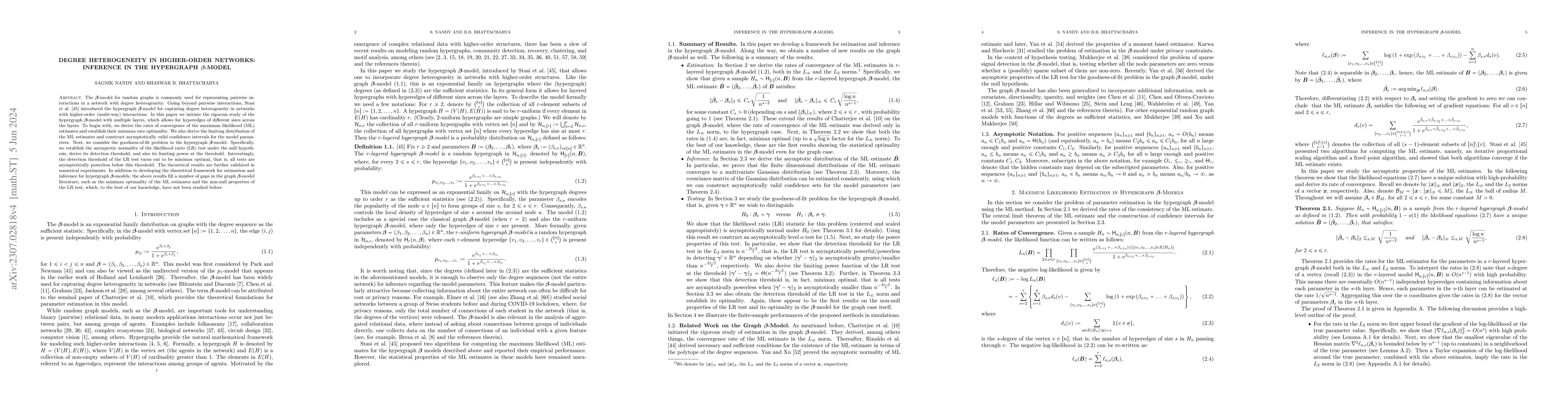This paper rigorously studies the hypergraph $\boldsymbol{\beta}$-model for networks with higher-order interactions, deriving optimal rates of convergence for maximum likelihood estimates and establishing the asymptotic normality of the likelihood ratio test for goodness-of-fit, which achieves minimax optimality. Theoretical results are validated through numerical experiments.