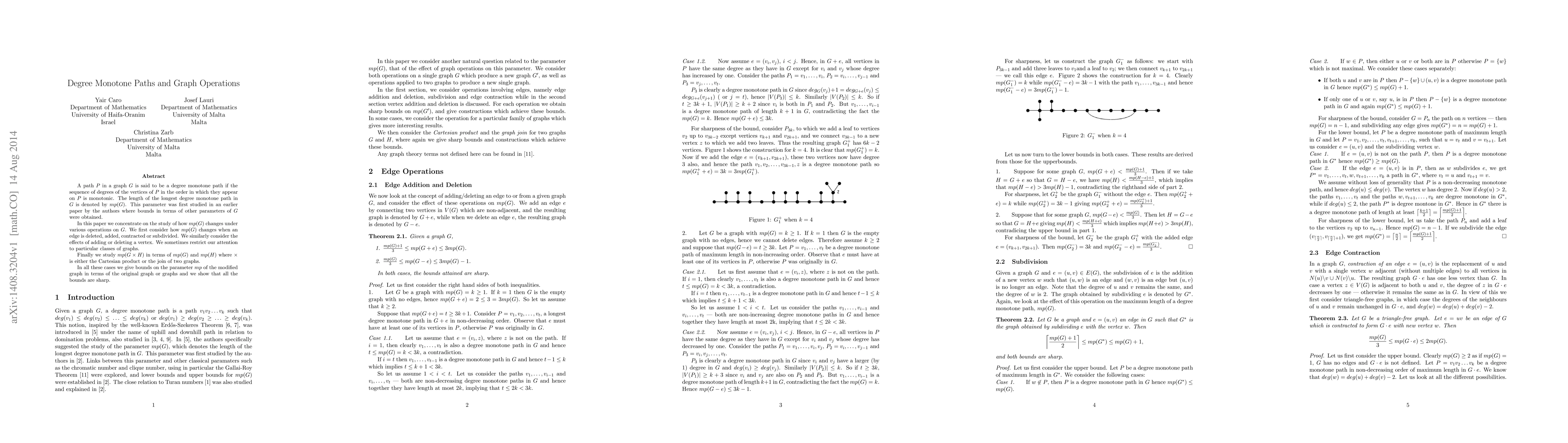 A path $P$ in a graph $G$ is said to be a degree monotone path if the sequence of degrees of the vertices of $P$ in the order in which they appear on $P$ is monotonic. The length of the longest degree monotone path in $G$ is denoted by $mp(G)$. This parameter was first studied in an earlier paper by the authors where bounds in terms of other parameters of $G$ were obtained. In this paper we concentrate on the study of how $mp(G)$ changes under various operations on $G$. We first consider how $mp(G)$ changes when an edge is deleted, added, contracted or subdivided. We similarly consider the effects of adding or deleting a vertex. We sometimes restrict our attention to particular classes of graphs. Finally we study $mp(G \times H)$ in terms of $mp(G)$ and $mp(H)$ where $\times$ is either the Cartesian product or the join of two graphs. In all these cases we give bounds on the parameter $mp$ of the modified graph in terms of the original graph or graphs and we show that all the bounds are sharp.