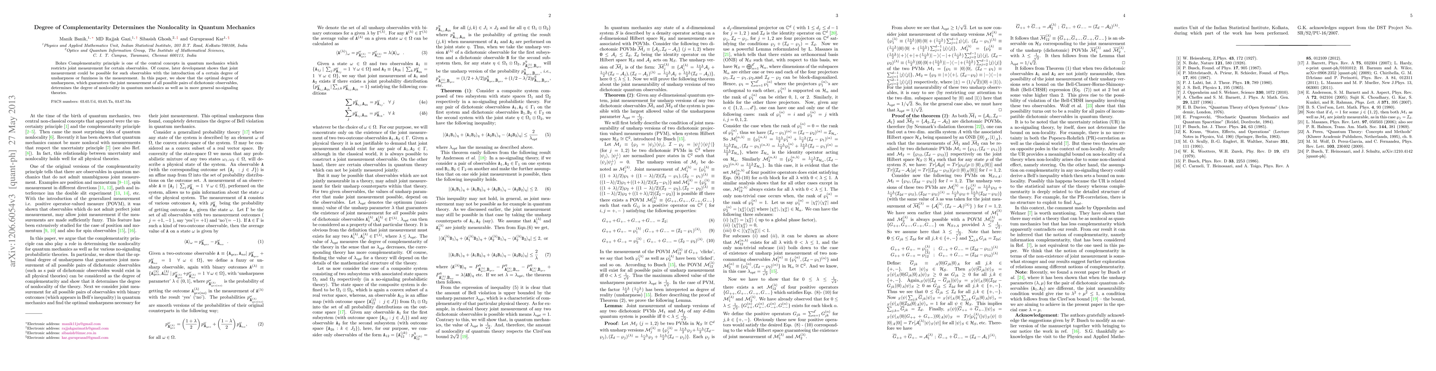 This paper explores how the degree of complementarity, through unsharpness in measurement, influences the possibility of joint measurement of complementary observables in quantum mechanics. It concludes that the optimal degree of unsharpness correlates with the degree of nonlocality in quantum mechanics and no-signaling theories.