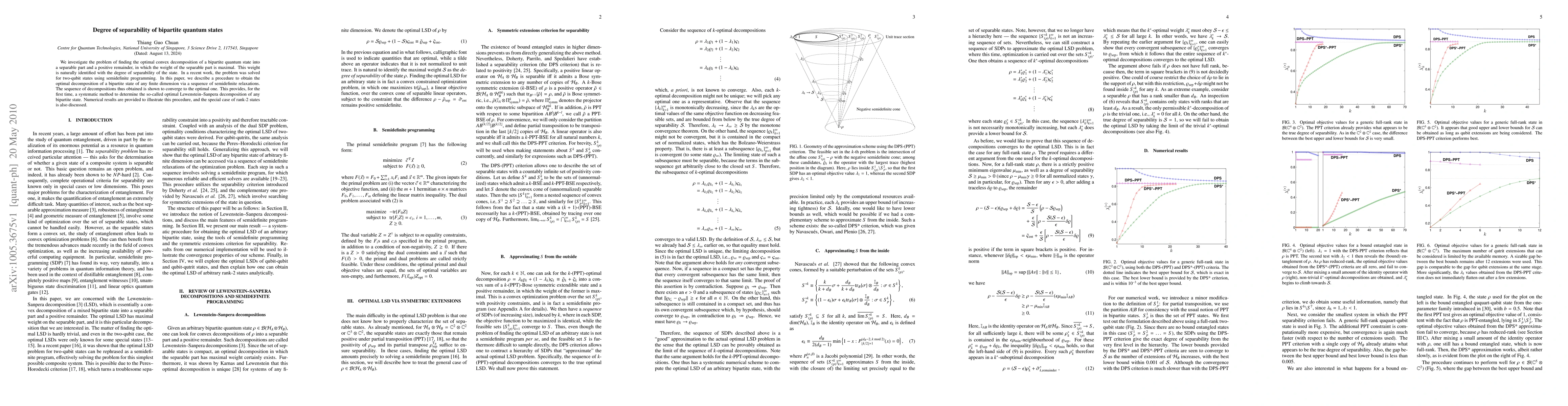 This paper develops a systematic method to determine the optimal decomposition of bipartite quantum states into separable parts using semidefinite programming, providing a solution for any finite-dimensional state.