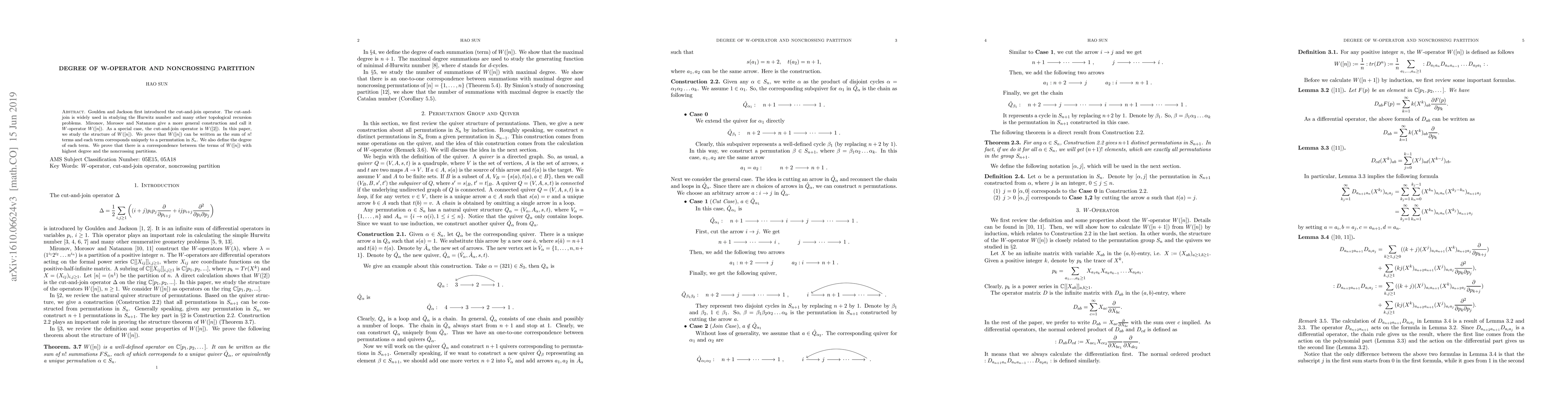 Goulden and Jackson first introduced the cut-and-join operator. The cut-and-join is widely used in studying the Hurwitz number and many other topological recursion problems. Mironov, Morosov and Natanzon give a more general construction and call it W-operator W([n]). As a special case, the cut-and-join operator is W([2]). In this paper, we study the structure of W([n]). We prove that W([n]) can be written as the sum of n! terms and each term corresponds uniquely to a permutation in Sn. We also define the degree of each term. We prove that there is a correspondence between the terms of W([n]) with highest degree and the noncrossing partitions.
