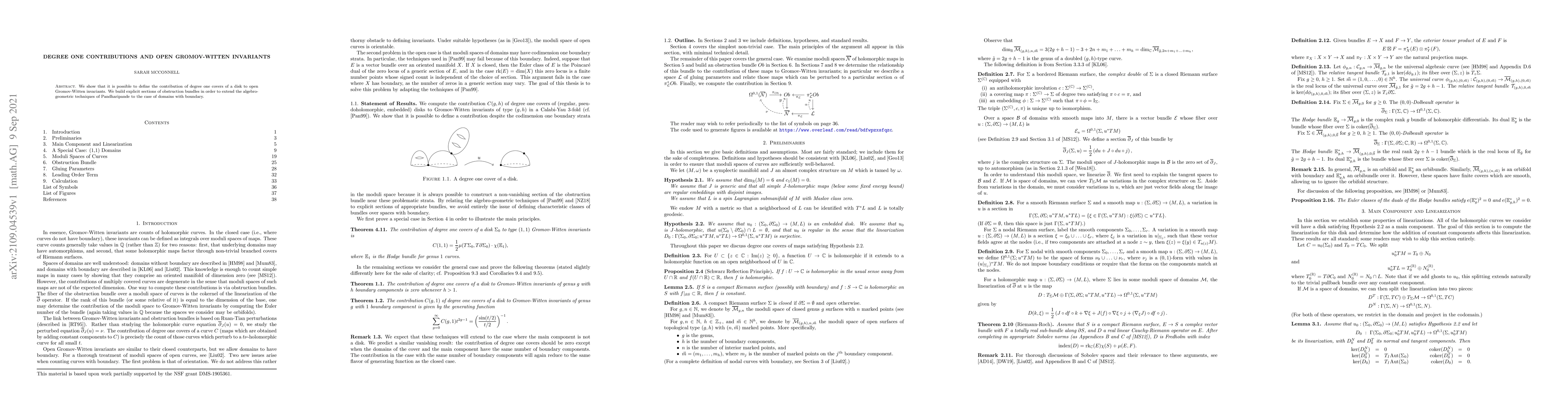 Summary: This paper defines degree one contributions to open Gromov-Witten invariants by constructing explicit sections of obstruction bundles, extending algebro-geometric techniques from Pandharipande to domains with boundary.