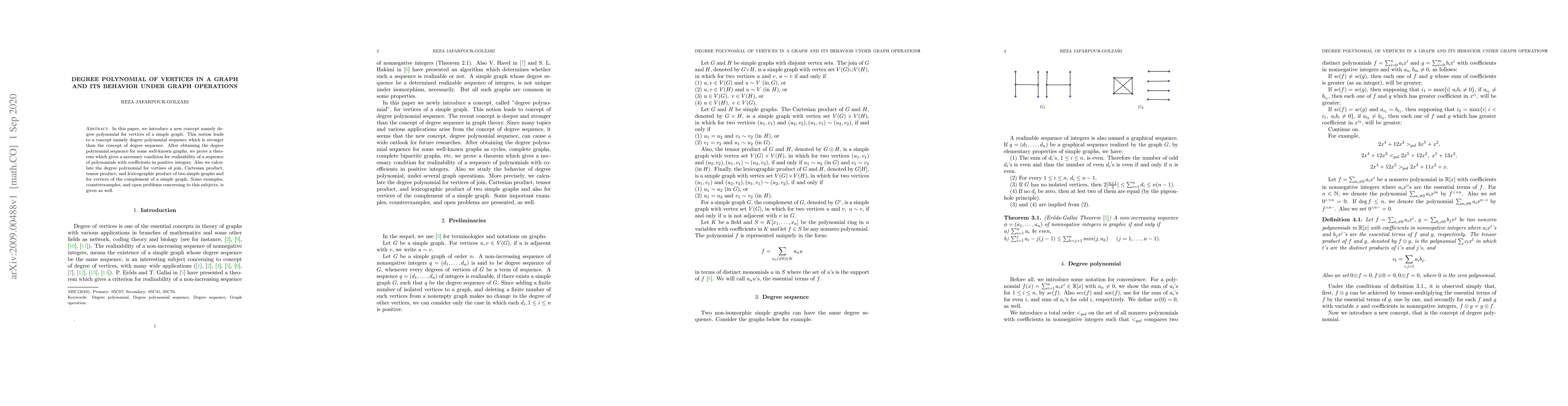 In this paper, we introduce a new concept namely degree polynomial for vertices of a simple graph. This notion leads to a concept namely degree polynomial sequence which is stronger than the concept of degree sequence. After obtaining the degree polynomial sequence for some well-known graphs, we prove a theorem which gives a necessary condition for realizability of a sequence of polynomials with coefficients in positive integers. Also we calculate the degree polynomial for vertises of join, Cartesian product, tensor product, and lexicographic product of two simple graphs and for vertices of the complement of a simple graph. Some examples, counterexamples, and open problems concerning to this subjects, is given as well