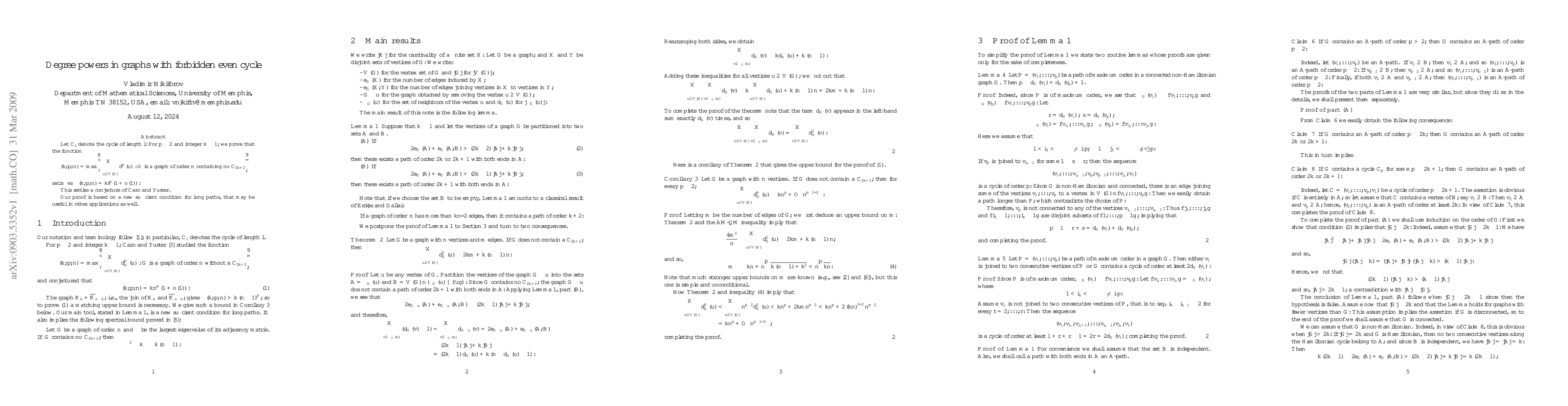 Researchers prove a conjecture about graph degree powers in graphs without even cycles, offering a new condition for long paths that may aid in other applications.