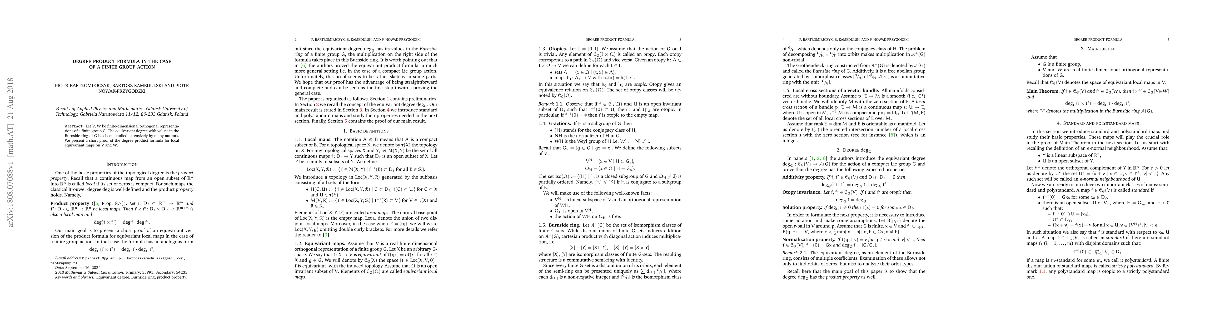 This paper provides a short proof of the degree product formula for local equivariant maps on finite-dimensional orthogonal representations of a finite group G.