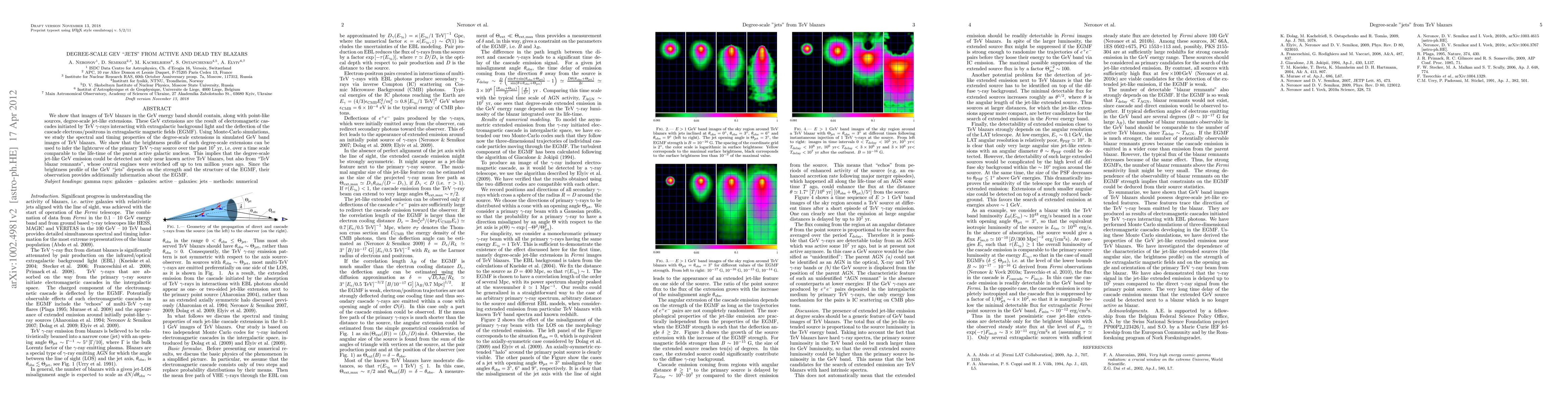 We show that images of TeV blazars in the GeV energy band should contain, along with point-like sources, degree-scale jet-like extensions. These GeV extensions are the result of electromagnetic cascades initiated by TeV gamma-rays interacting with extragalactic background light and the deflection of the cascade electrons/positrons in extragalactic magnetic fields (EGMF). Using Monte-Carlo simulations, we study the spectral and timing properties of the degree-scale extensions in simulated GeV band images of TeV blazars. We show that the brightness profile of such degree-scale extensions can be used to infer the lightcurve of the primary TeV gamma-ray source over the past 1e7 yr, i.e. over a time scale comparable to the life-time of the parent active galactic nucleus. This implies that the degree-scale jet-like GeV emission could be detected not only near known active TeV blazars, but also from "TeV blazar remnants", whose central engines were switched off up to ten million years ago. Since the brightness profile of the GeV "jets" depends on the strength and the structure of the EGMF, their observation provides additionally information about the EGMF.