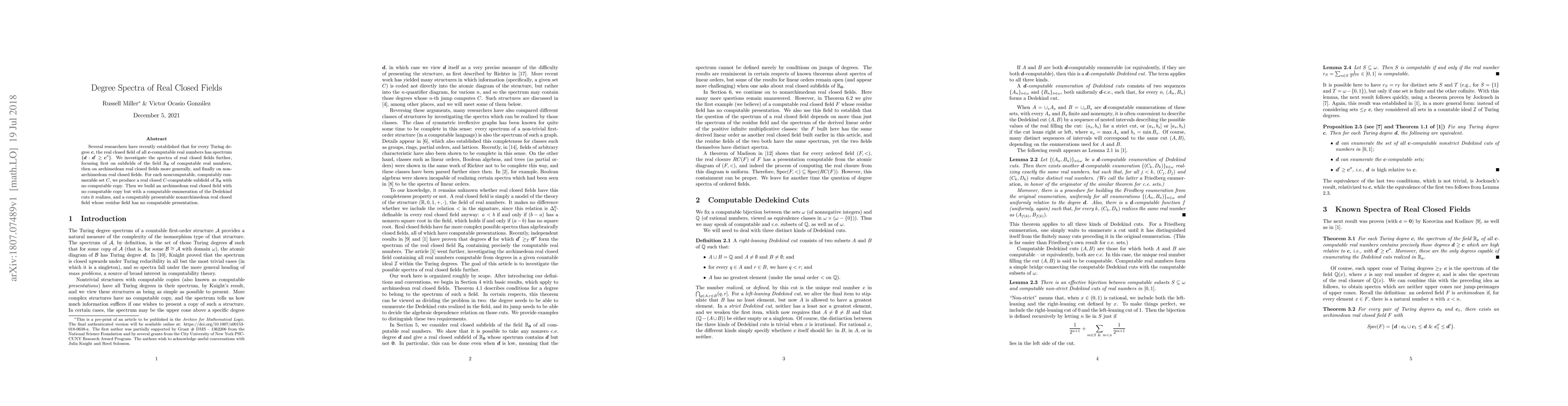 This paper explores the degree spectra of real closed fields, demonstrating that for every Turing degree $c$, the spectrum of the real closed field of $c$-computable reals is $\{\boldsymbol{d}~:~\boldsymbol{d}'\geq\boldsymbol{c}"\}$. It further investigates subfields of computable reals and both archimedean and non-archimedean real closed fields, showing the existence of noncomputable, computably enumerable sets with specific computable properties.