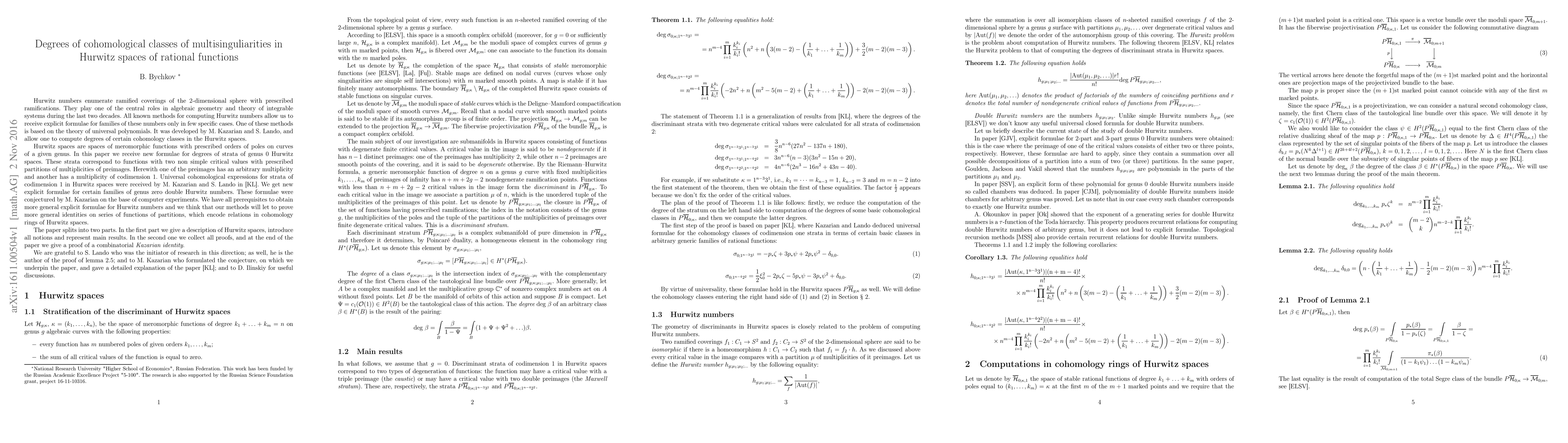 This paper introduces new formulae for the degrees of strata in Hurwitz spaces of rational functions with two degenerate critical values, focusing on cases with prescribed multiplicities. It establishes new relations in cohomology, confirming conjectures and yielding previously unknown explicit formulae for certain double Hurwitz numbers in genus 0.