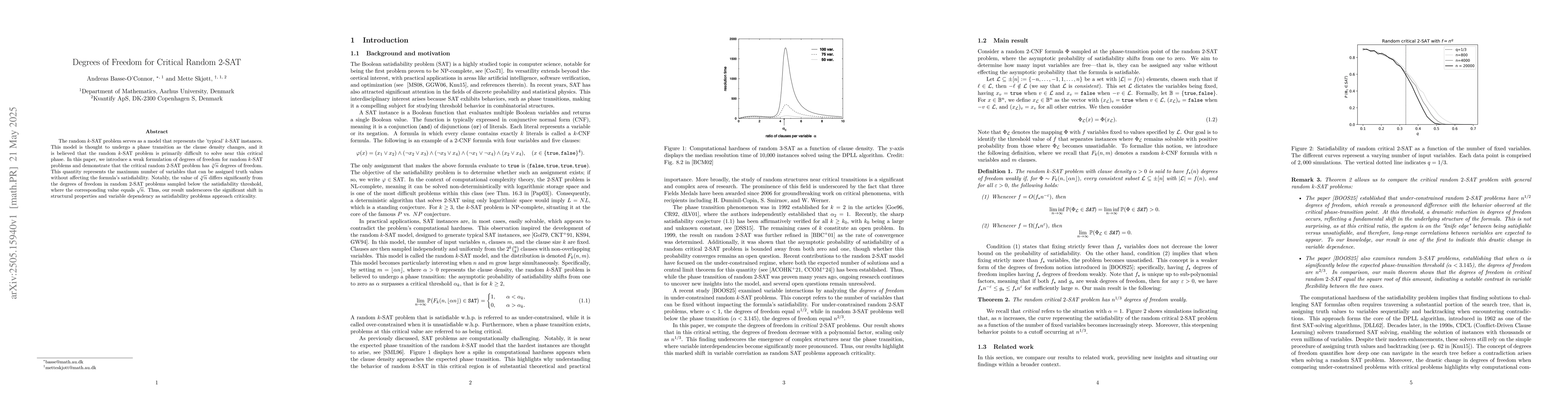 The paper introduces a weak formulation of degrees of freedom for random k-SAT problems and demonstrates its application to critical random 2-SAT, comparing it with sub-critical instances.
