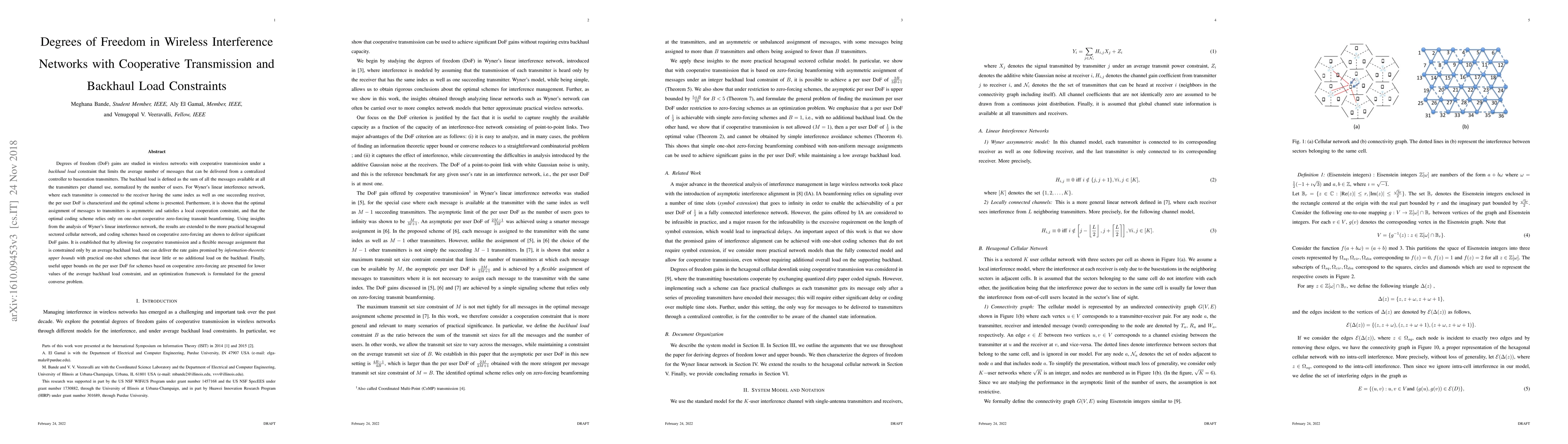 This paper investigates DoF gains in wireless networks with cooperative transmission under backhaul load constraints, characterizing optimal schemes for Wyner's linear interference network and extending findings to hexagonal cellular networks. It demonstrates that cooperative zero-forcing can achieve significant DoF gains with minimal backhaul load.
