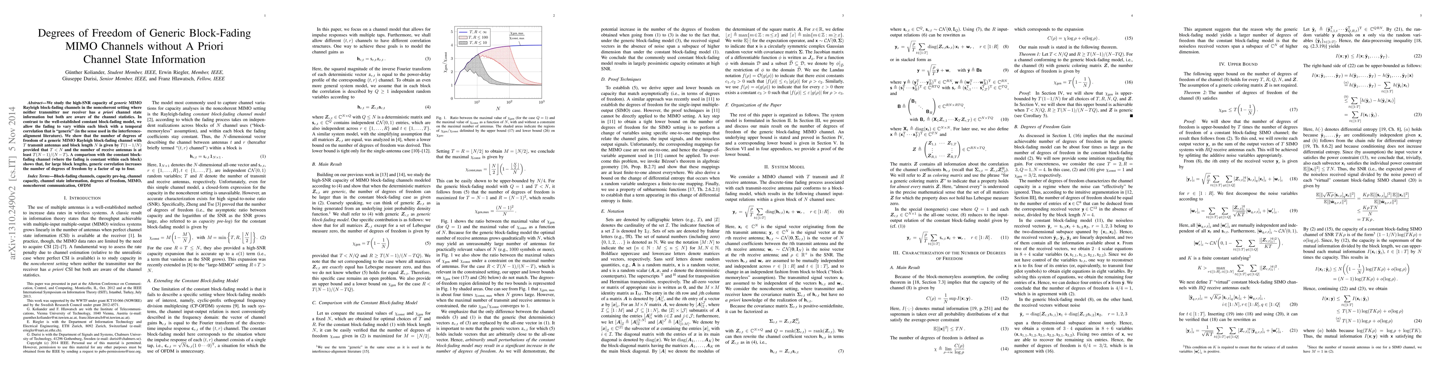 number of degrees of freedom of a generic MIMO Rayleigh block-fading channel