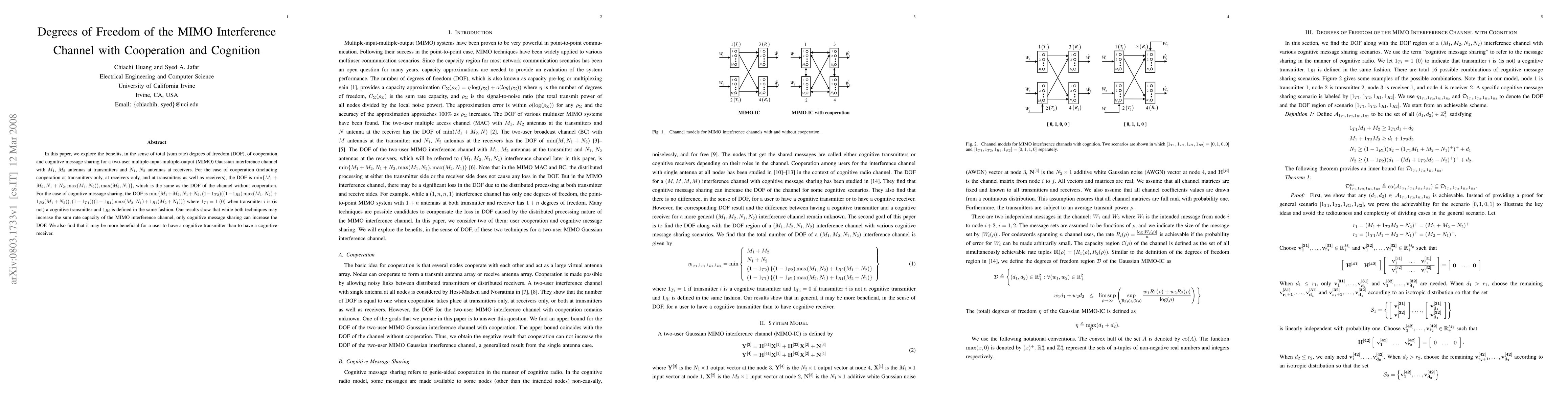 This paper investigates the impact of cooperation and cognitive message sharing on the degrees of freedom (DOF) in a two-user MIMO interference channel. It finds that cooperation does not alter the DOF, while cognitive message sharing can increase it, suggesting cognitive transmitters may offer more benefits than cognitive receivers.