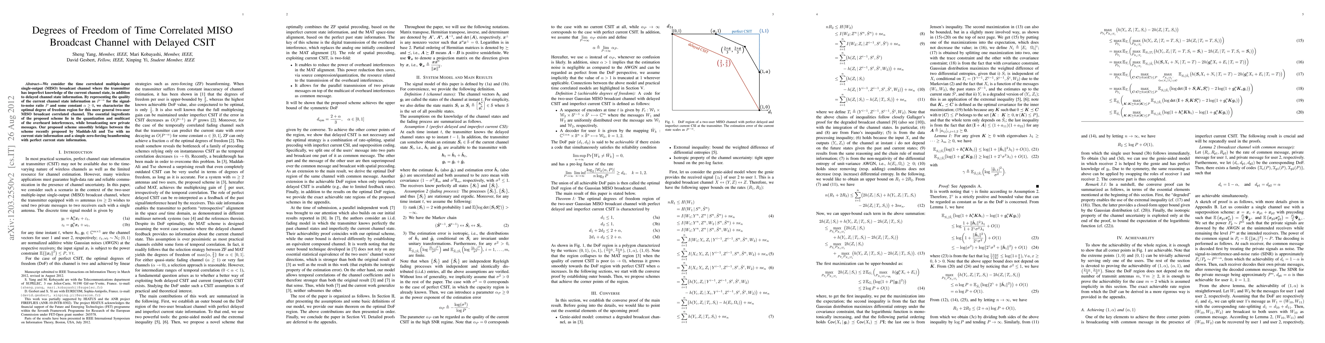 This paper investigates the degrees of freedom for a time correlated MISO broadcast channel with imperfect and delayed channel state information. The authors propose a scheme that quantizes and multicasts overheard interferences while broadcasting private messages, bridging the gap between existing schemes with no current state information and those with perfect state information.