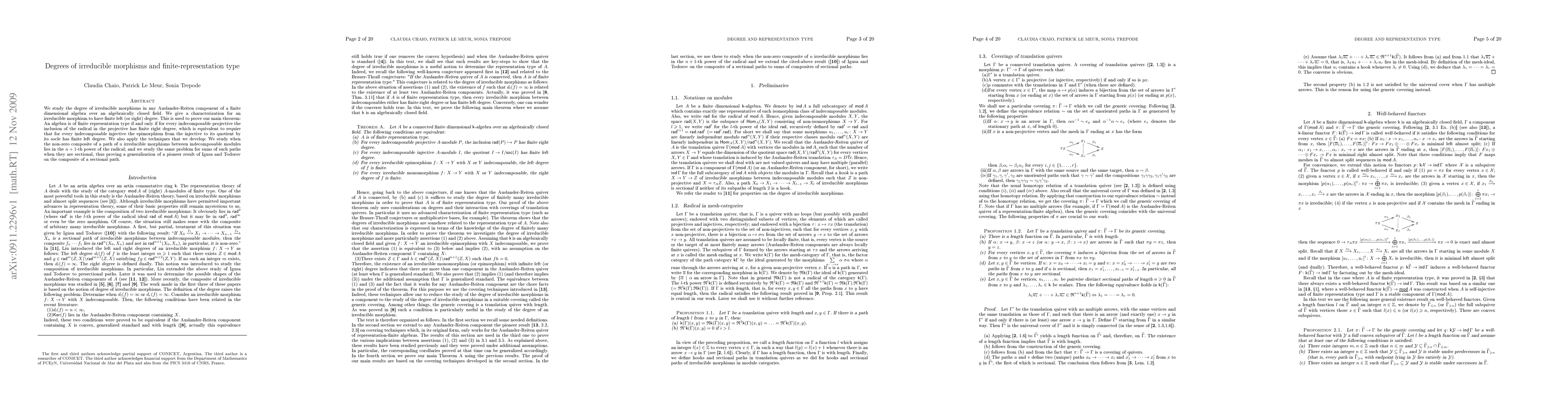 We study the degree of irreducible morphisms in any Auslander-Reiten component of a finite dimensional algebra over an algebraically closed field. We give a characterization for an irreducible morphism to have finite left (or right) degree. This is used to prove our main theorem: An algebra is of finite representation type if and only if for every indecomposable projective the inclusion of the radical in the projective has finite right degree, which is equivalent to require that for every indecomposable injective the epimorphism from the injective to its quotient by its socle has finite left degree. We also apply the techniques that we develop: We study when the non-zero composite of a path of $n$ irreducible morphisms between indecomposable modules lies in the $n+1$-th power of the radical; and we study the same problem for sums of such paths when they are sectional, thus proving a generalisation of a pioneer result of Igusa and Todorov on the composite of a sectional path.