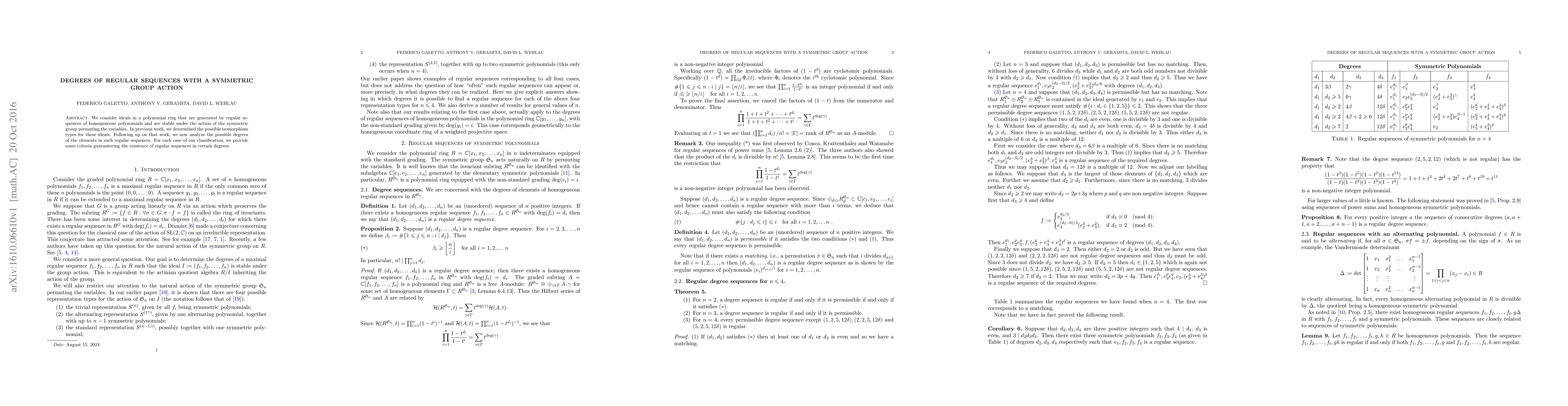 This paper investigates ideals in polynomial rings generated by regular sequences of homogeneous polynomials, focusing on those stable under the symmetric group's action. It provides criteria for the existence of such regular sequences in specific degrees, building on previous work classifying these ideals' isomorphism types.