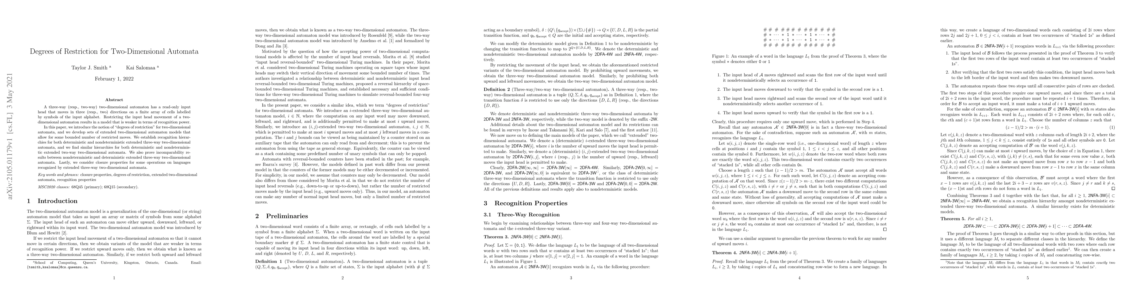 A three-way (resp., two-way) two-dimensional automaton has a read-only input head that moves in three (resp., two) directions on a finite array of cells labelled by symbols of the input alphabet. Restricting the input head movement of a two-dimensional automaton results in a model that is weaker in terms of recognition power. In this paper, we introduce the notion of "degrees of restriction" for two-dimensional automata, and we develop sets of extended two-dimensional automaton models that allow for some bounded number of restricted moves. We establish recognition hierarchies for both deterministic and nondeterministic extended three-way two-dimensional automata, and we find similar hierarchies for both deterministic and nondeterministic extended two-way two-dimensional automata. We also prove incomparability results between nondeterministic and deterministic extended three-way two-dimensional automata. Lastly, we consider closure properties for some operations on languages recognized by extended three-way two-dimensional automata.