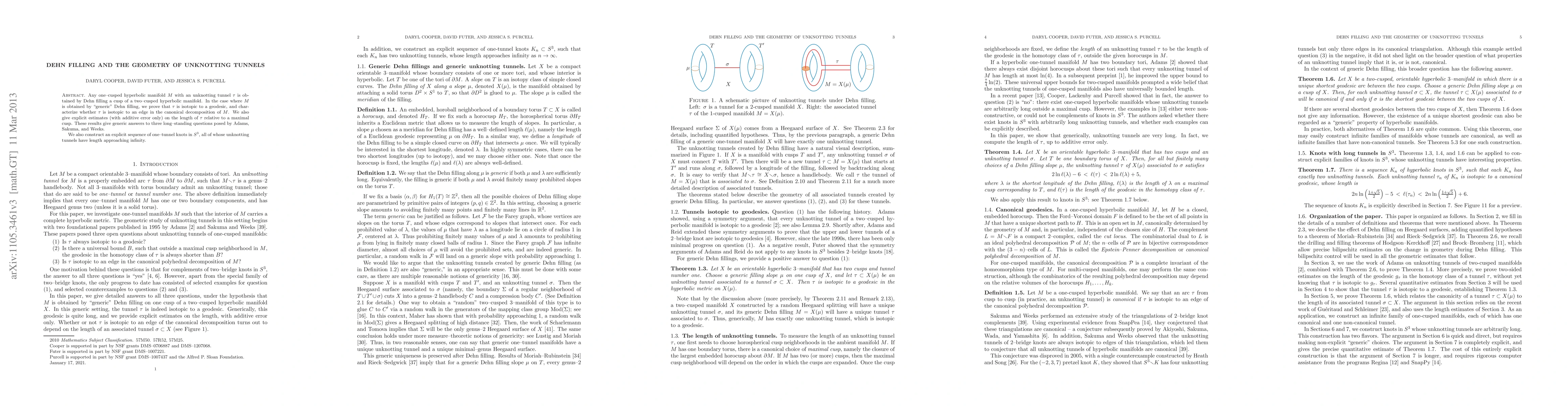Any one-cusped hyperbolic manifold M with an unknotting tunnel tau is obtained by Dehn filling a cusp of a two-cusped hyperbolic manifold. In the case where M is obtained by "generic" Dehn filling, we prove that tau is isotopic to a geodesic, and characterize whether tau is isotopic to an edge in the canonical decomposition of M. We also give explicit estimates (with additive error only) on the length of tau relative to a maximal cusp. These results give generic answers to three long-standing questions posed by Adams, Sakuma, and Weeks. We also construct an explicit sequence of one-tunnel knots in S^3, all of whose unknotting tunnels have length approaching infinity.