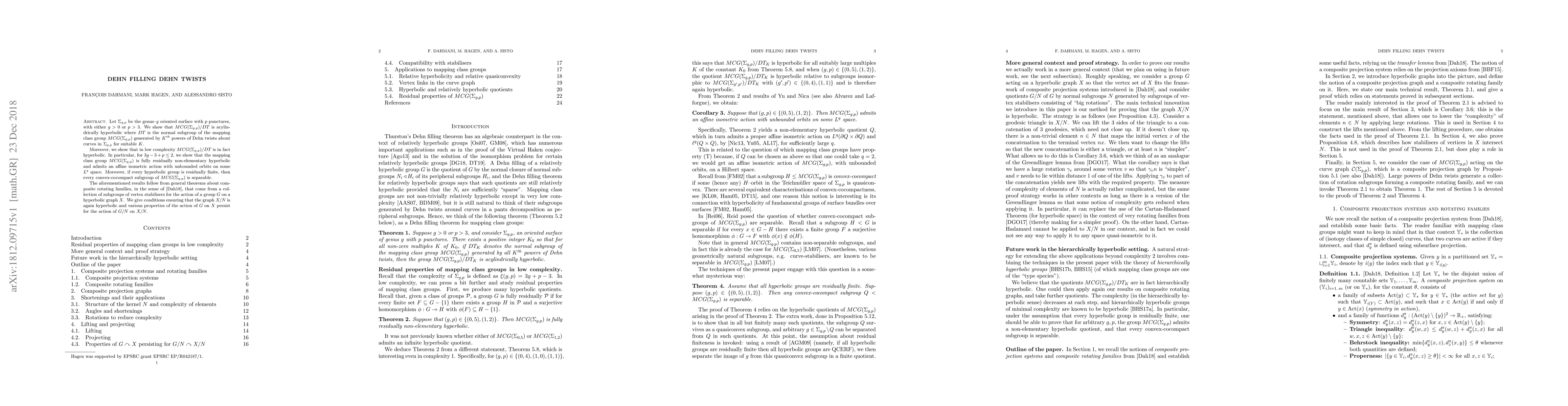 Let $\Sigma_{g,p}$ be the genus--$g$ oriented surface with $p$ punctures, with either $g>0$ or $p>3$. We show that $MCG(\Sigma_{g,p})/DT$ is acylindrically hyperbolic where $DT$ is the normal subgroup of the mapping class group $MCG(\Sigma_{g,p})$ generated by $K^{th}$ powers of Dehn twists about curves in $\Sigma_{g,p}$ for suitable $K$. Moreover, we show that in low complexity $MCG(\Sigma_{g,p})/DT$ is in fact hyperbolic. In particular, for $3g-3+p\leq 2$, we show that the mapping class group $MCG(\Sigma_{g,p})$ is fully residually non-elementary hyperbolic and admits an affine isometric action with unbounded orbits on some $L^q$ space. Moreover, if every hyperbolic group is residually finite, then every convex-cocompact subgroup of $MCG(\Sigma_{g,p})$ is separable. The aforementioned results follow from general theorems about composite rotating families that come from a collection of subgroups of vertex stabilisers for the action of a group $G$ on a hyperbolic graph $X$. We give conditions ensuring that the graph $X/N$ is again hyperbolic and various properties of the action of $G$ on $X$ persist for the action of $G/N$ on $X/N$.