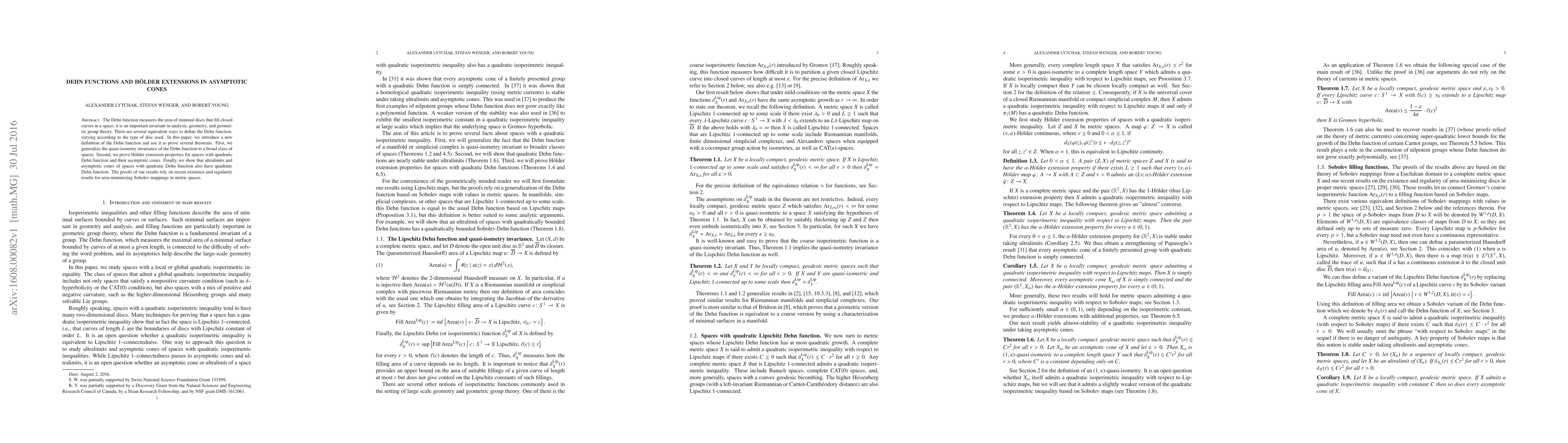 The Dehn function measures the area of minimal discs that fill closed curves in a space; it is an important invariant in analysis, geometry, and geometric group theory. There are several equivalent ways to define the Dehn function, varying according to the type of disc used. In this paper, we introduce a new definition of the Dehn function and use it to prove several theorems. First, we generalize the quasi-isometry invariance of the Dehn function to a broad class of spaces. Second, we prove H\"older extension properties for spaces with quadratic Dehn function and their asymptotic cones. Finally, we show that ultralimits and asymptotic cones of spaces with quadratic Dehn function also have quadratic Dehn function. The proofs of our results rely on recent existence and regularity results for area-minimizing Sobolev mappings in metric spaces.