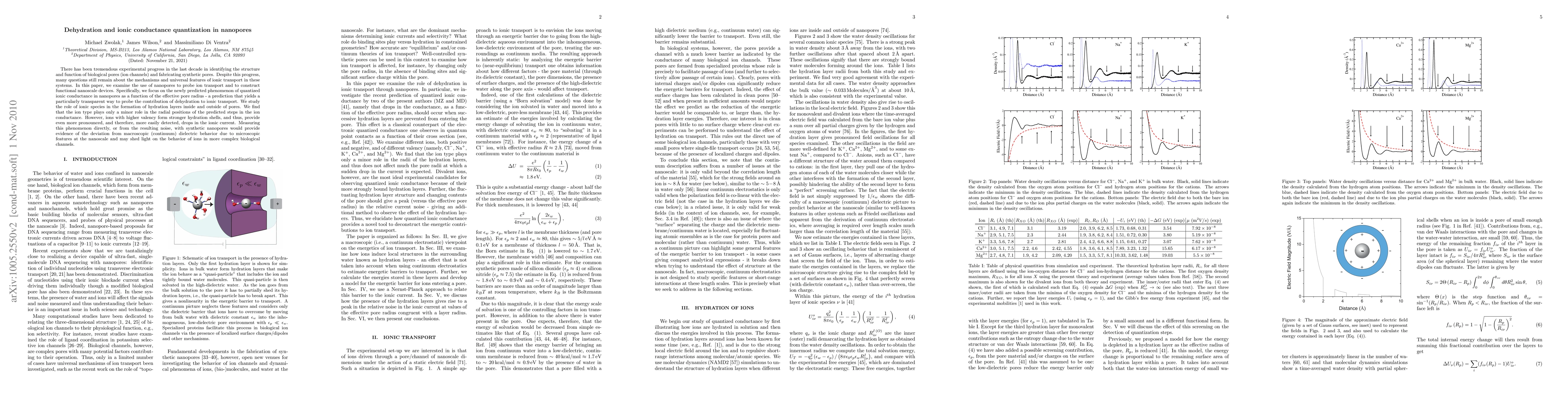 There has been tremendous experimental progress in the last decade in identifying the structure and function of biological pores (ion channels) and fabricating synthetic pores. Despite this progress, many questions still remain about the mechanisms and universal features of ionic transport in these systems. In this paper, we examine the use of nanopores to probe ion transport and to construct functional nanoscale devices. Specifically, we focus on the newly predicted phenomenon of quantized ionic conductance in nanopores as a function of the effective pore radius - a prediction that yields a particularly transparent way to probe the contribution of dehydration to ionic transport. We study the role of ionic species in the formation of hydration layers inside and outside of pores. We find that the ion type plays only a minor role in the radial positions of the predicted steps in the ion conductance. However, ions with higher valency form stronger hydration shells, and thus, provide even more pronounced, and therefore, more easily detected, drops in the ionic current. Measuring this phenomenon directly, or from the resulting noise, with synthetic nanopores would provide evidence of the deviation from macroscopic (continuum) dielectric behavior due to microscopic features at the nanoscale and may shed light on the behavior of ions in more complex biological channels.