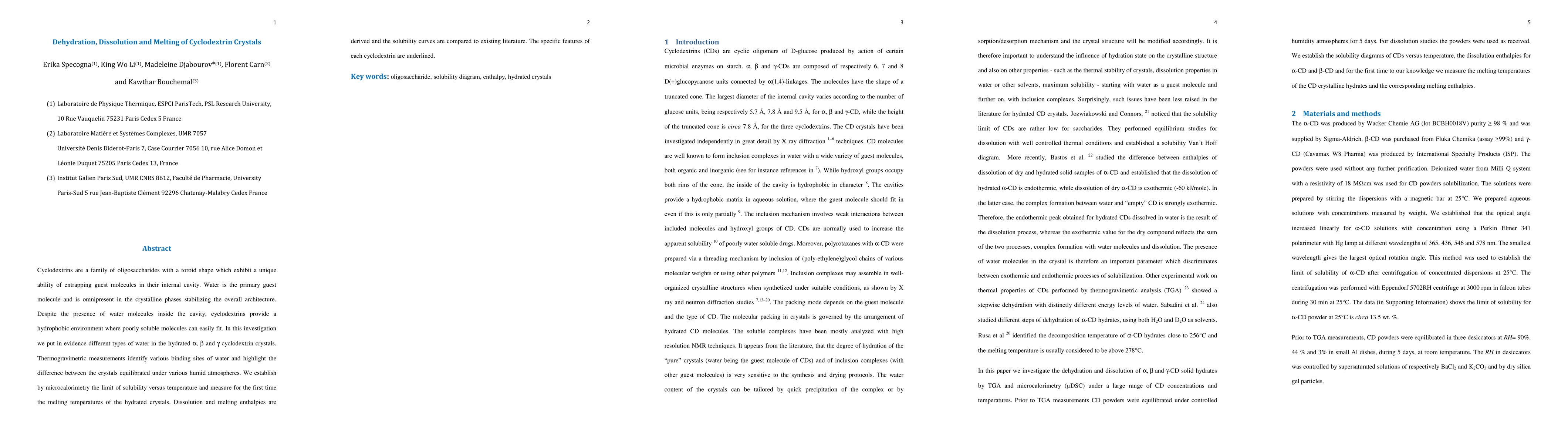 Researchers investigate the dehydration, dissolution, and melting of cyclodextrin crystals, revealing distinct features in their solubility curves and identifying new properties such as specific binding sites for water molecules.