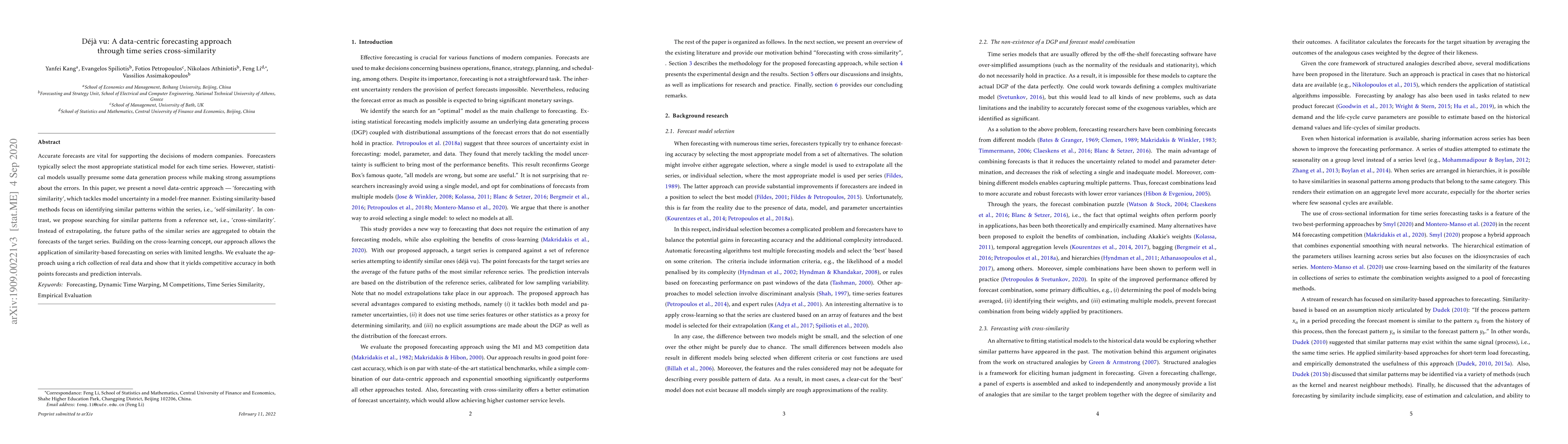 This paper introduces a novel data-centric forecasting method called "forecasting with similarity" that leverages cross-similarity among time series to generate forecasts without relying on traditional statistical models. The approach aggregates future paths of similar series from a reference set to predict the target series, demonstrating competitive accuracy in real data evaluations.