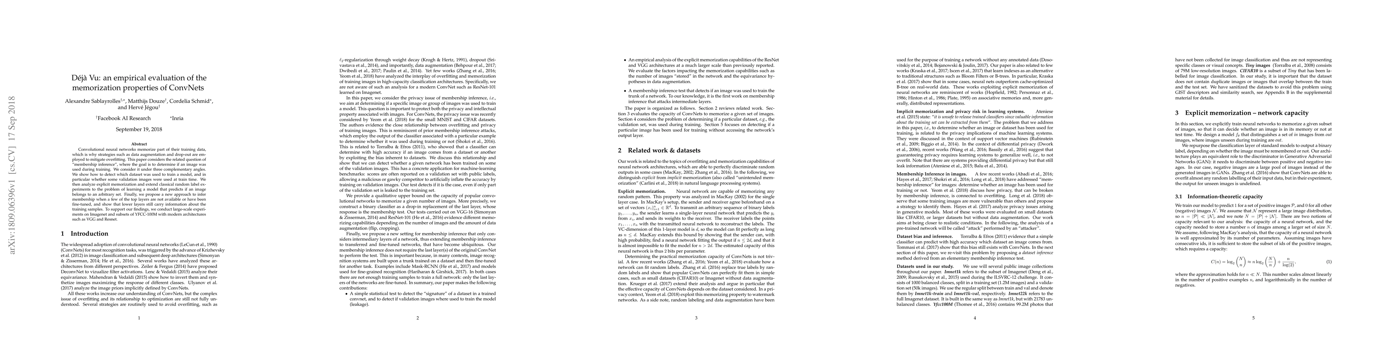 Convolutional neural networks memorize part of their training data, which is why strategies such as data augmentation and drop-out are employed to mitigate overfitting. This paper considers the related question of "membership inference", where the goal is to determine if an image was used during training. We consider it under three complementary angles. We show how to detect which dataset was used to train a model, and in particular whether some validation images were used at train time. We then analyze explicit memorization and extend classical random label experiments to the problem of learning a model that predicts if an image belongs to an arbitrary set. Finally, we propose a new approach to infer membership when a few of the top layers are not available or have been fine-tuned, and show that lower layers still carry information about the training samples. To support our findings, we conduct large-scale experiments on Imagenet and subsets of YFCC-100M with modern architectures such as VGG and Resnet.